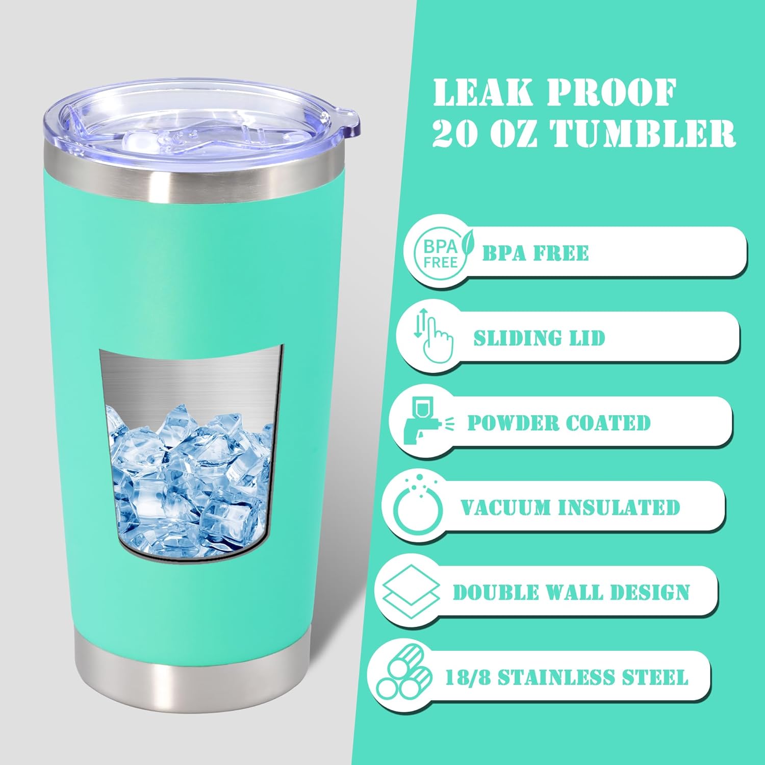 20 oz Tumbler with lid Double Wall Vacuum Insulated Tumblers Stainless Steel Coffee Mug Travel Coffee Tumbler Powder Coated Tumbler Cup Keep Hot&Cold - (Light Blue 12 Pack)