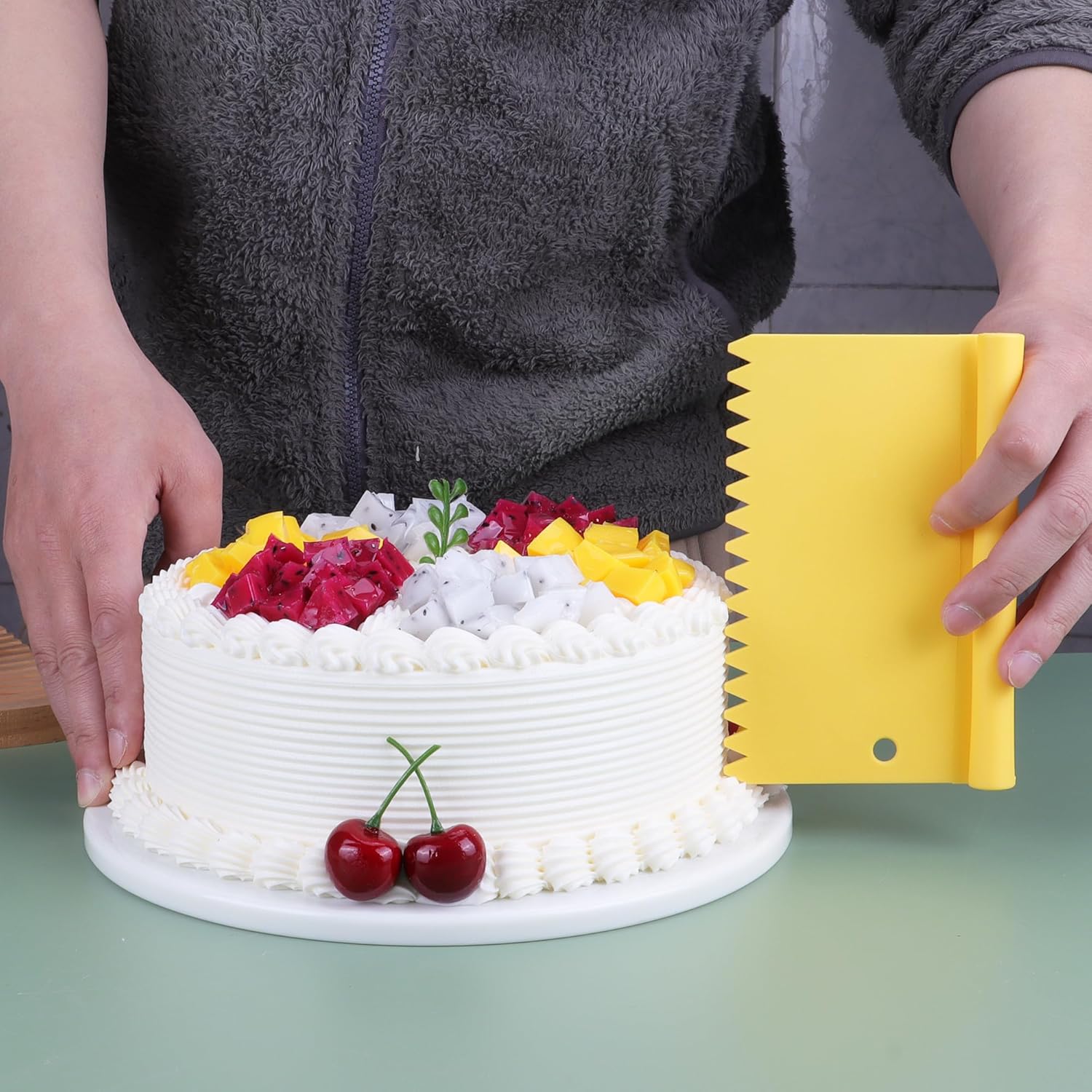 - DOUGH SCRAPER: more than just a bench scraper. It can also be cut into dough and made into pastry/pizza/spaghetti/bread and biscuits. Smooths the icing/cream on the cake, divide the butter into small pieces etc! 5-piece dough scraper, which can be used to cut various foods- you have always wanted this bench scraper, you just don't know it