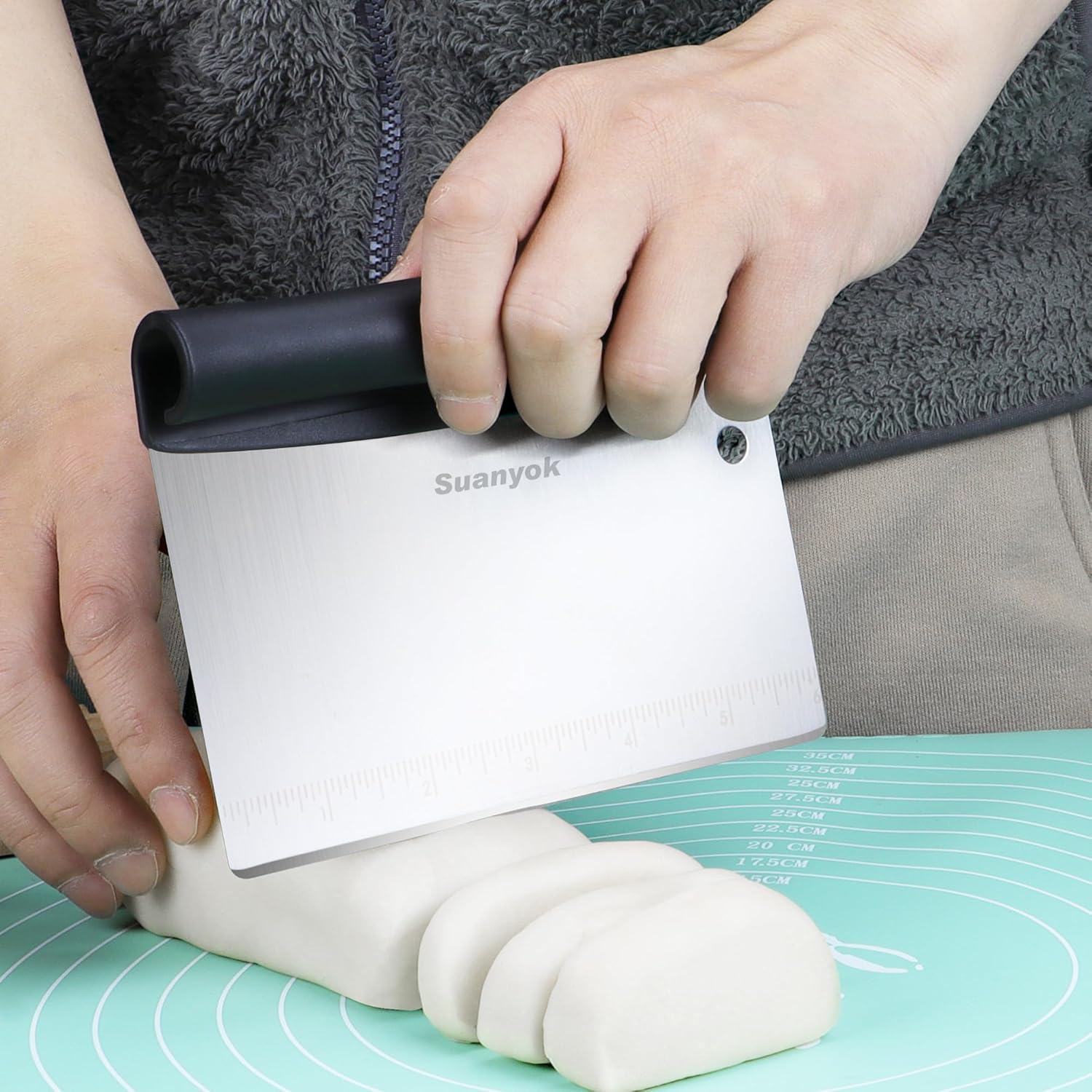 - STAINLESS STEEL BENCH SCRAPER: equipped with 430 stainless steel safety bevels blades specially designed for dough.With the clearly engraved measurement conversion table, you can quickly reference and mark up to 6 inches at any time- Precise dough cutting and dispensing is easier than ever