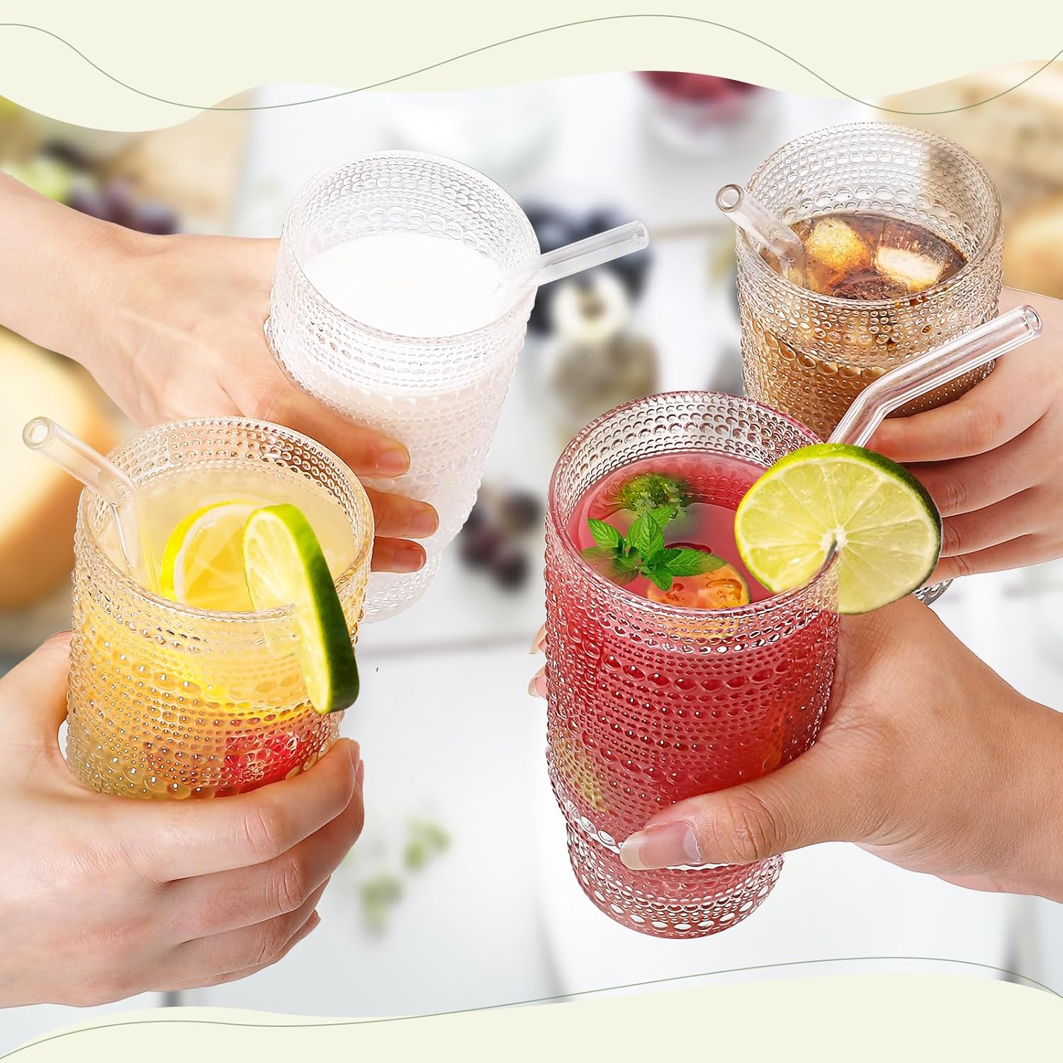 - 【Suitable for Any Occasion】The elegant glassware are great for any hot and cold drinks for any occasion. You can use it to drink refreshing beer, make perfect cocktails, whiskey, all kinds of tea, juice, milk shake. It is widely loved in homes, kitchens, milk tea shops, cafes, bars and restaurants
