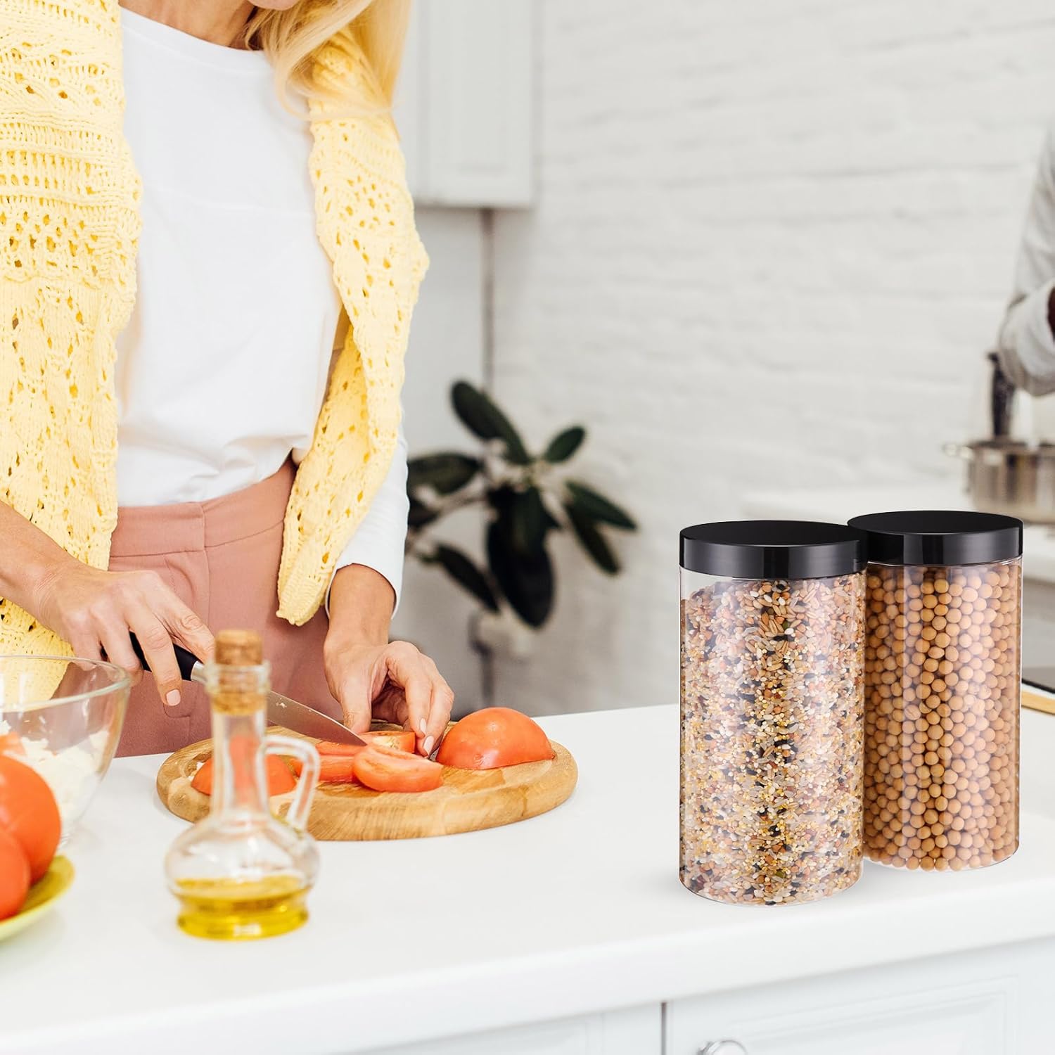 Patelai 4 Pieces Round Wide-mouth Leak Proof Plastic Container Jars with Lids for Travel Storage Makeup Beauty Products Face Creams Oils Salves Ointments DIY Making(32 Ounce,Black)