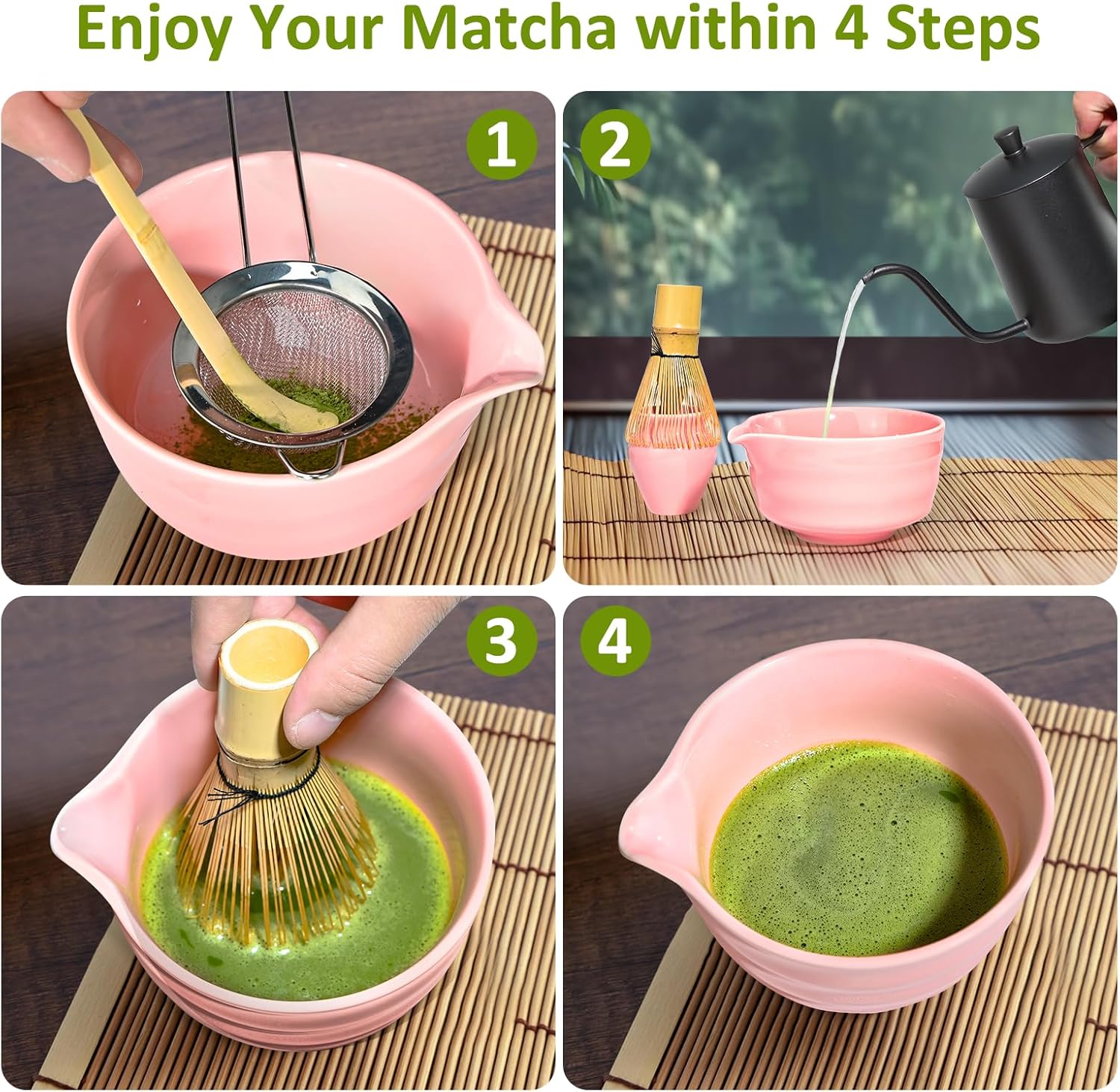- A Gift of Serenity - Surprise your love with the gift of tranquility. Our traditional matcha making kit is a great gift for those who appreciate the finer things in life. The elegant bamboo whisk and ceramic bowl add a touch of sophistication to any tea ceremony. This matcha set kit is a wonderful way to show your care. Whether it's for a friend, family member, or colleague, it's a gift that will be cherished.
