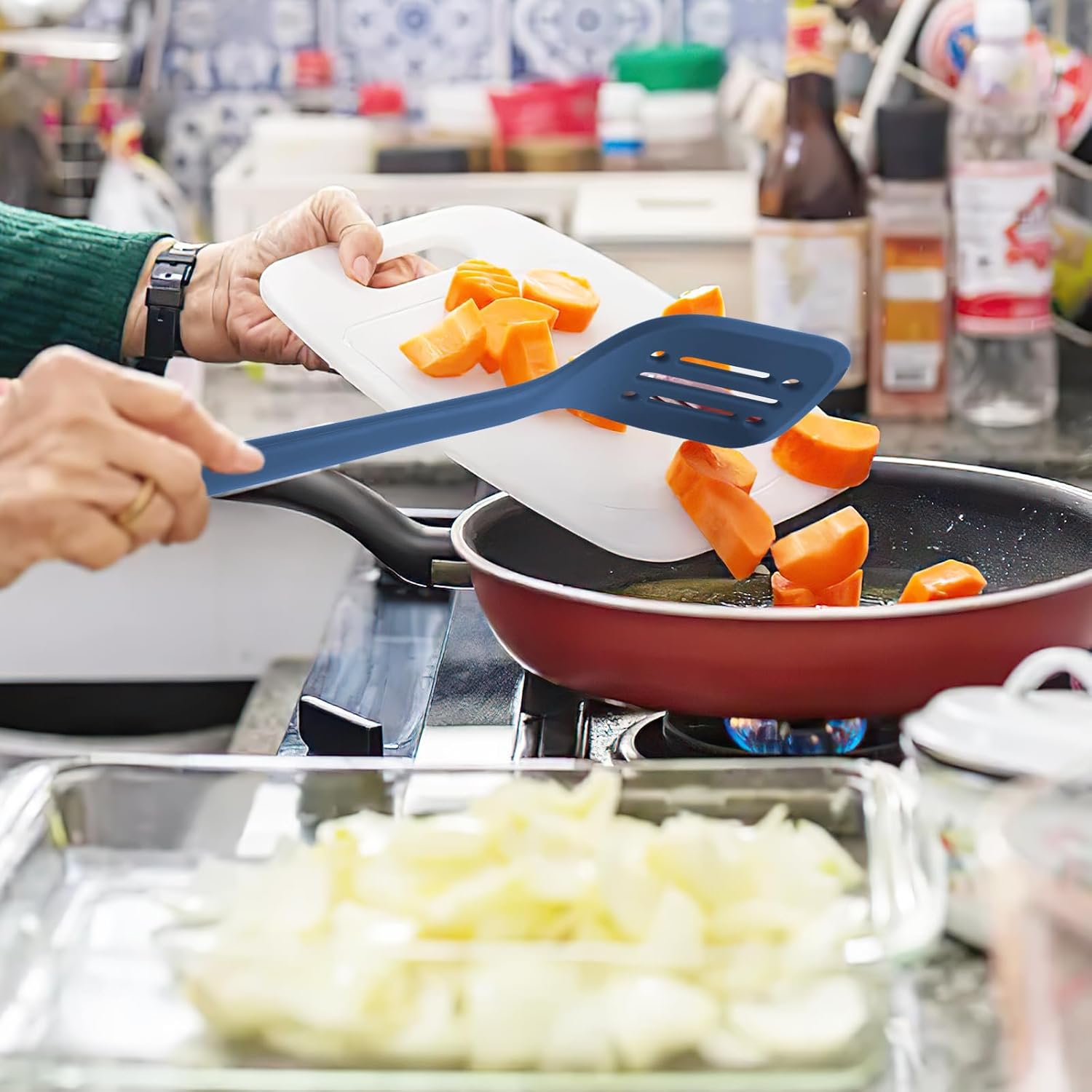 - ONE-PIECE DESIGN with STAINLESS STEEL INSIDE - The dishwasher safe kitchen set with solid integrated design makes no crevices to catch food particles or dishwater. Coated with soft silicone and stainless steels inside, the handle is nice and firm to hold and non-scratch, especially good for the non-stick cookware