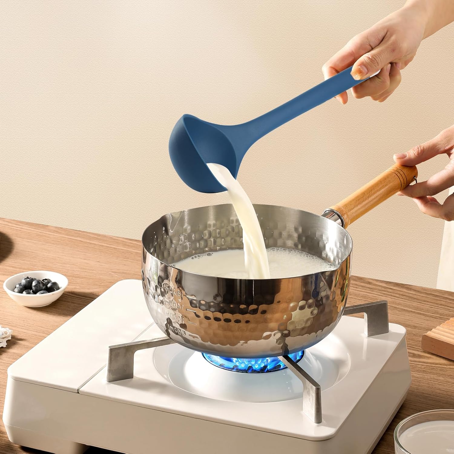 - LONG SEAMLESS INTEGRATED DESIGN - The sizes are about 13.6 inch in length and are perfect for most mixing, stirring, serving, basting needs. The handle is long enough for most large cookware without being too big to use at the table. Long length keeps your hand far from the heat.
