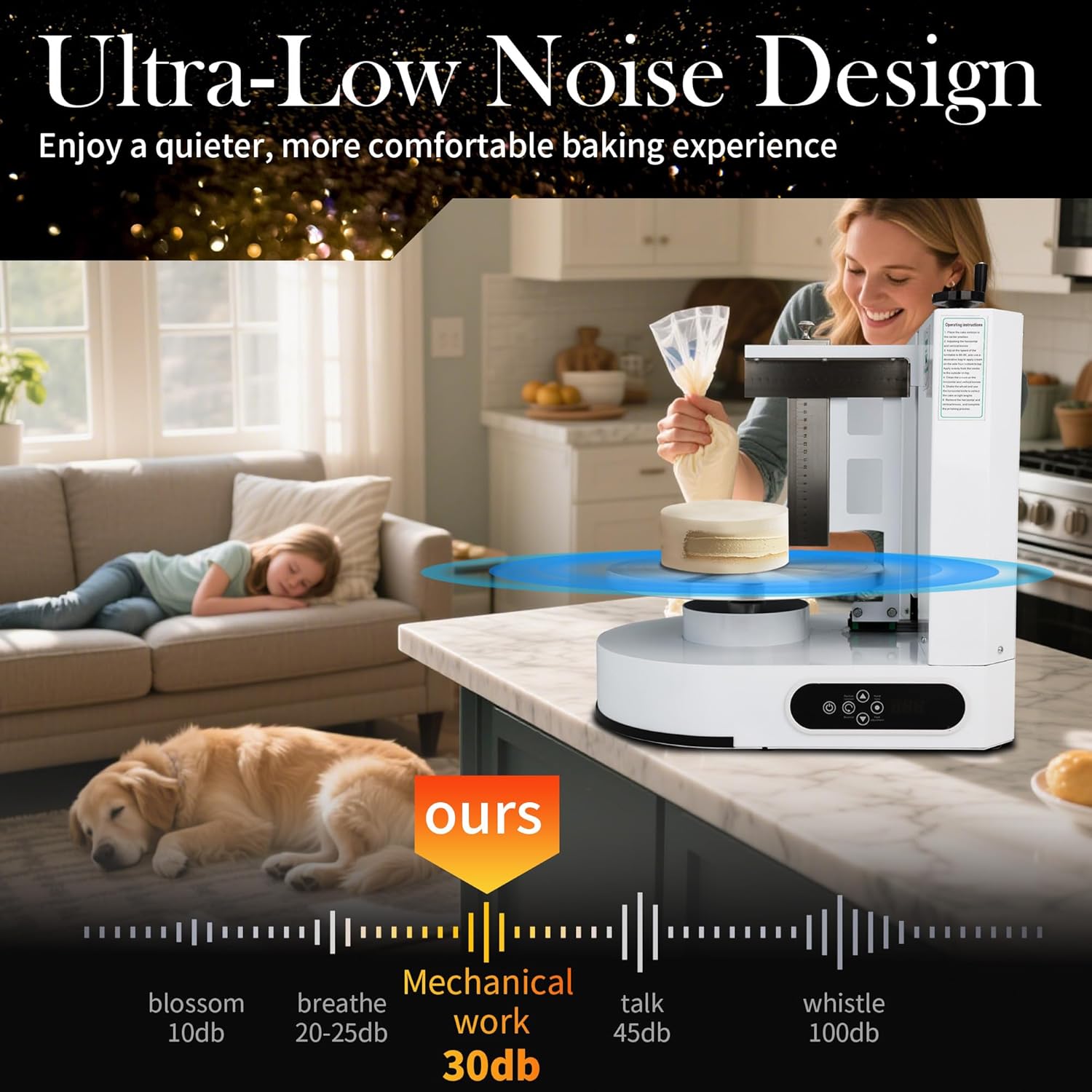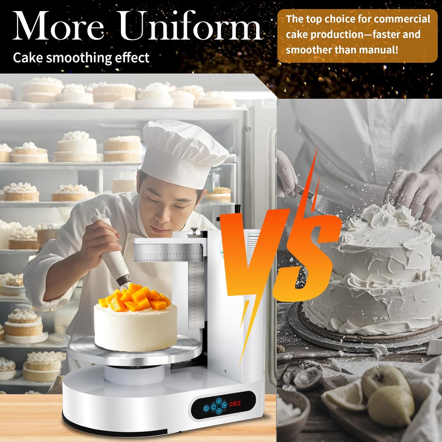 - 【30-Second Frosting】The 200W electric cake frosting machine allows you to complete a perfectly frosted cake in just 30 seconds. It’s faster and more even than traditional turntables, helping you boost productivity and focus on your creative designs.