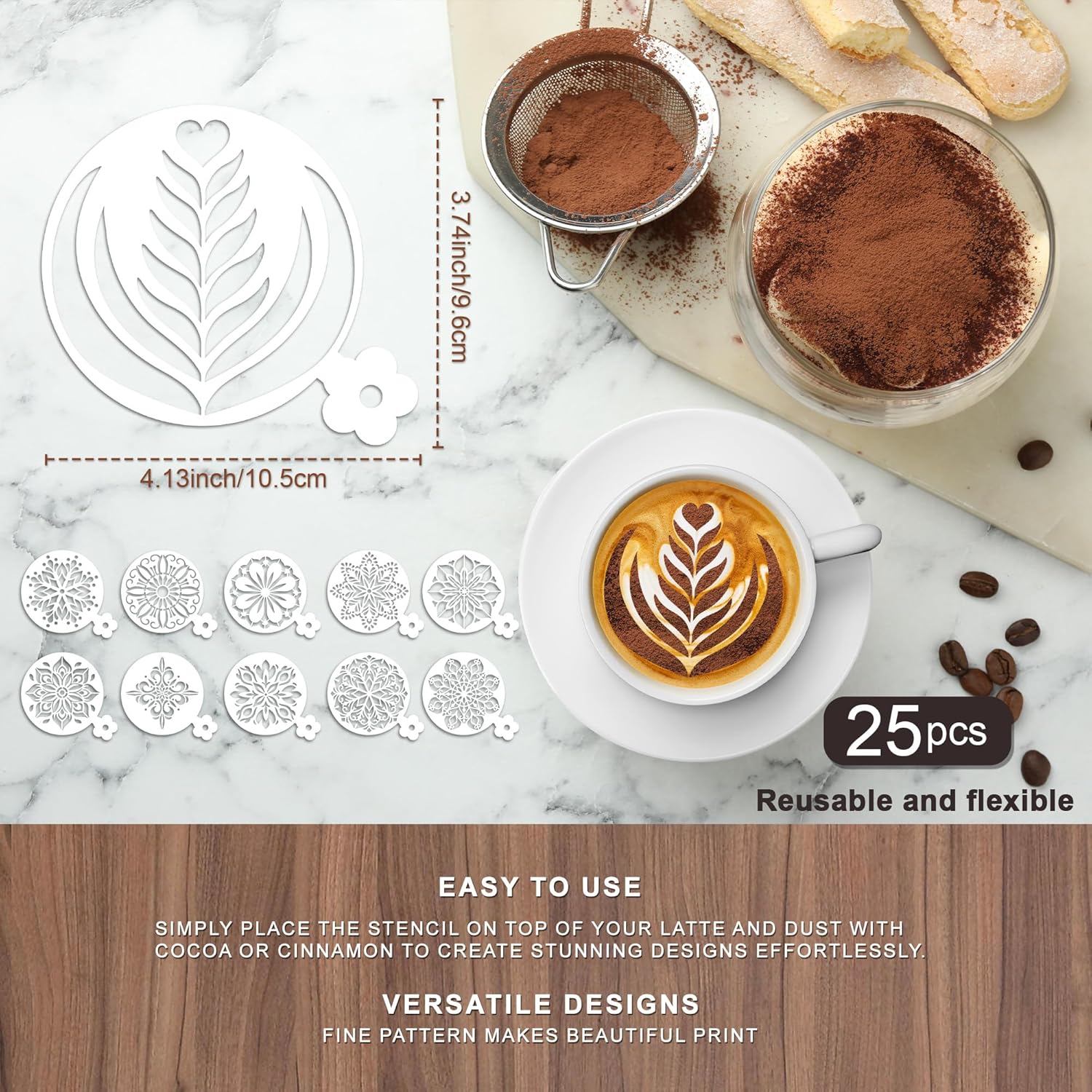 - Mandala Cookie Stencils for Baking: You will receive 25 Pcs of mandala cookie latte stencils; Each stencil measures 4.1x3.8 inches, perfect for making bread, desserts, coffee and more