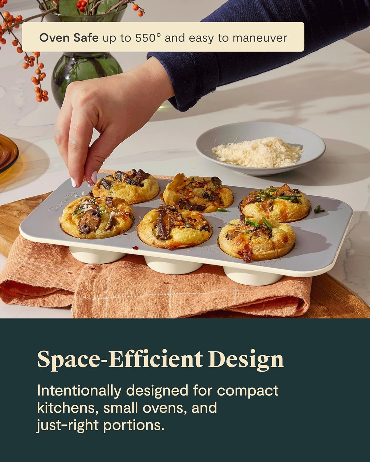 Caraway Nonstick Ceramic 6 Cup Muffin Pan – Non-Toxic, PTFE & PFOA Free – Oven Safe – Aluminized Steel Core – Small Muffin Pan for Baking Cupcakes, Muffins & More - Cream