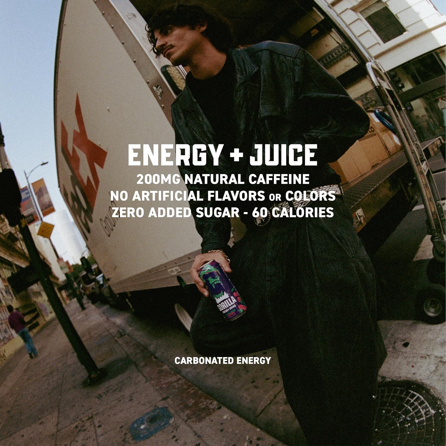 - REAL FRUIT JUICE SQUEEZED, THEN CONCENTRATED: Each sip bursts with natural flavors, using real fruit juice thatās squeezed and then concentrated for an authentic taste. With no artificial flavors or colors, clean ingredients, and only 60 calories per can, Gorilla Energy offers a light, refreshing and carbonated way to recharge.