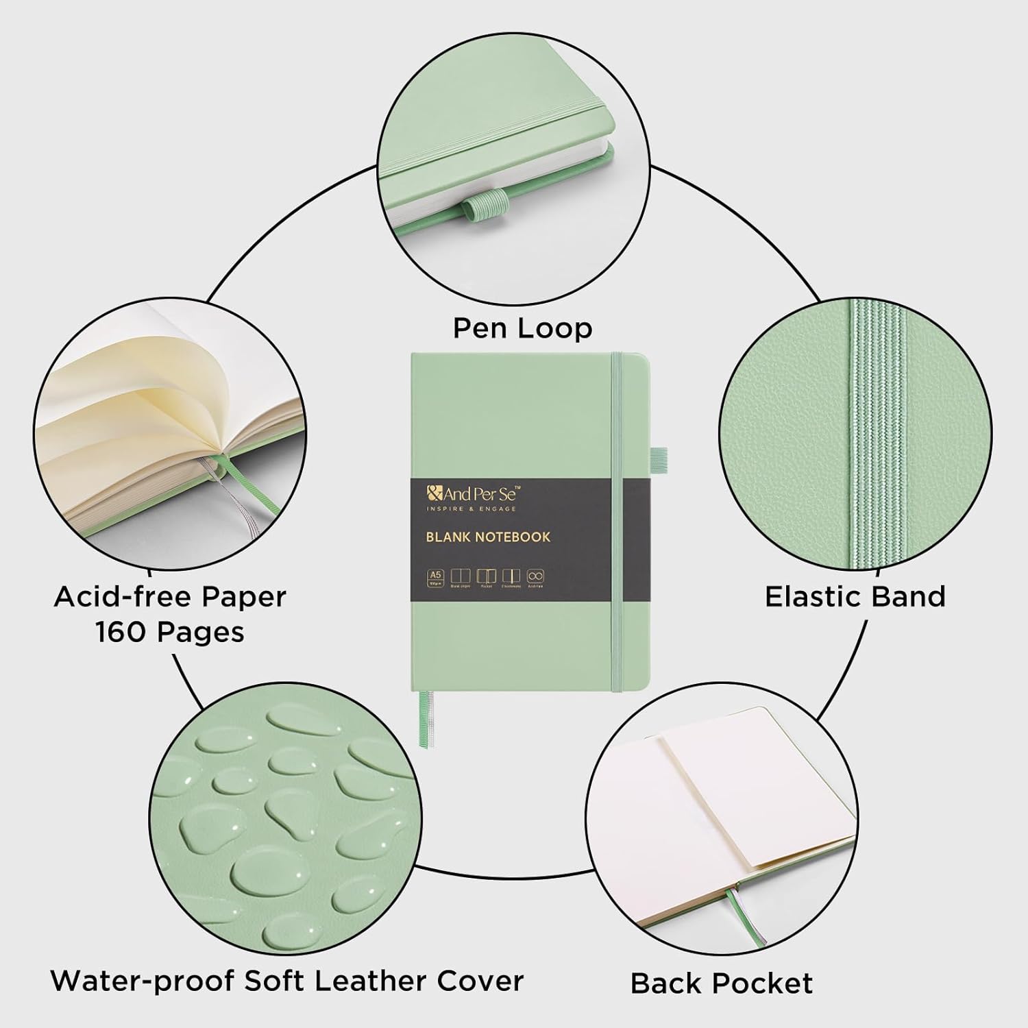 &And Per Se Blank Journal Notebook, 160 Pages, 5.7 x 8 inches College Ruled Thick Paper Notebook Journals for Writing, Hardcover Notebook(1 Pack, Light Green)
