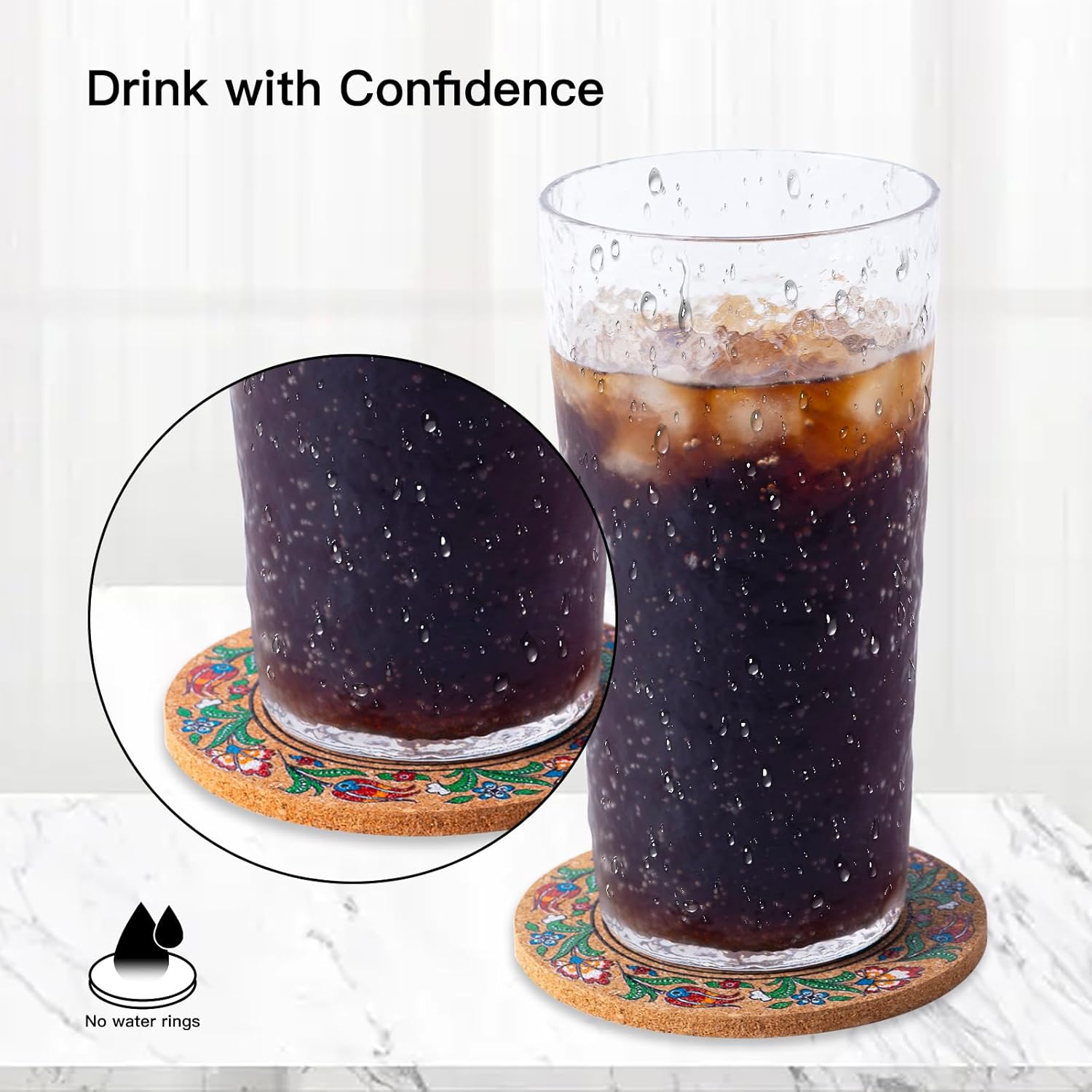 Coasters for Drinks 12 pcs Absorbent Cork Coasters with Turkish Mandala Pattrn for Coffee Table Housewarming Gifts for New Home Present for Friends, Living Room Decor, Apartment Decor