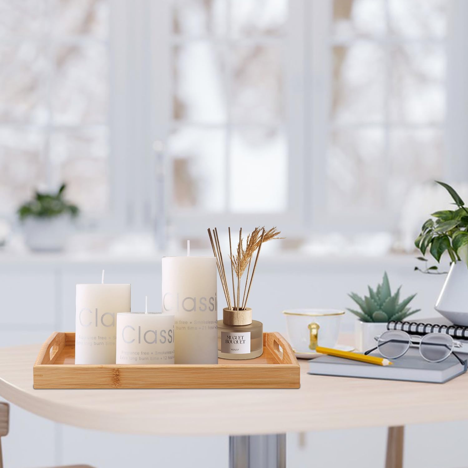 3 PCS Bamboo Serving Tray, 3 Size Nested Breakfast Bed Tray with Handle, Wood Serving Tray for Serving, Breakfast Bed Trays for Eating, Decor, Displaying Cake, Fruit