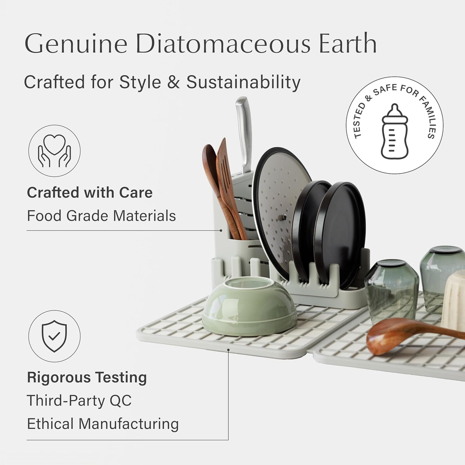 - FOOD-SAFE MATERIALS: Crafted from BPA-free, FDA-tested materials, this durable dish drying rack is dishwasher safe. The stone drying mat wipes clean effortlessly, giving you a modern, low-maintenance kitchen solution built for safe and long-lasting use.