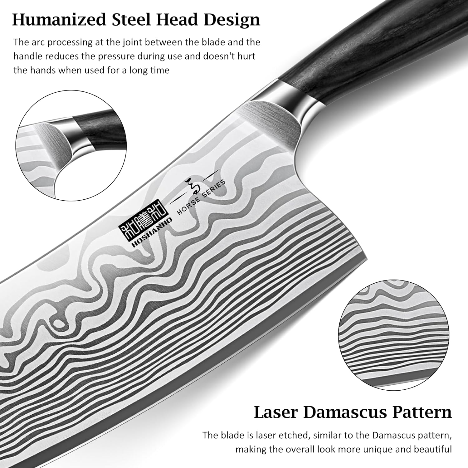 - 【Multipurpose Cleaver Knife】The cleaver is the ideal tool for heavy-duty kitchen needs or carving thicker meat. Multi-Functional vegetable cleaver knife can be used for a wide range of cutting tasks, from chopping vegetables, slicing meat to filleting fish and mincing herbs