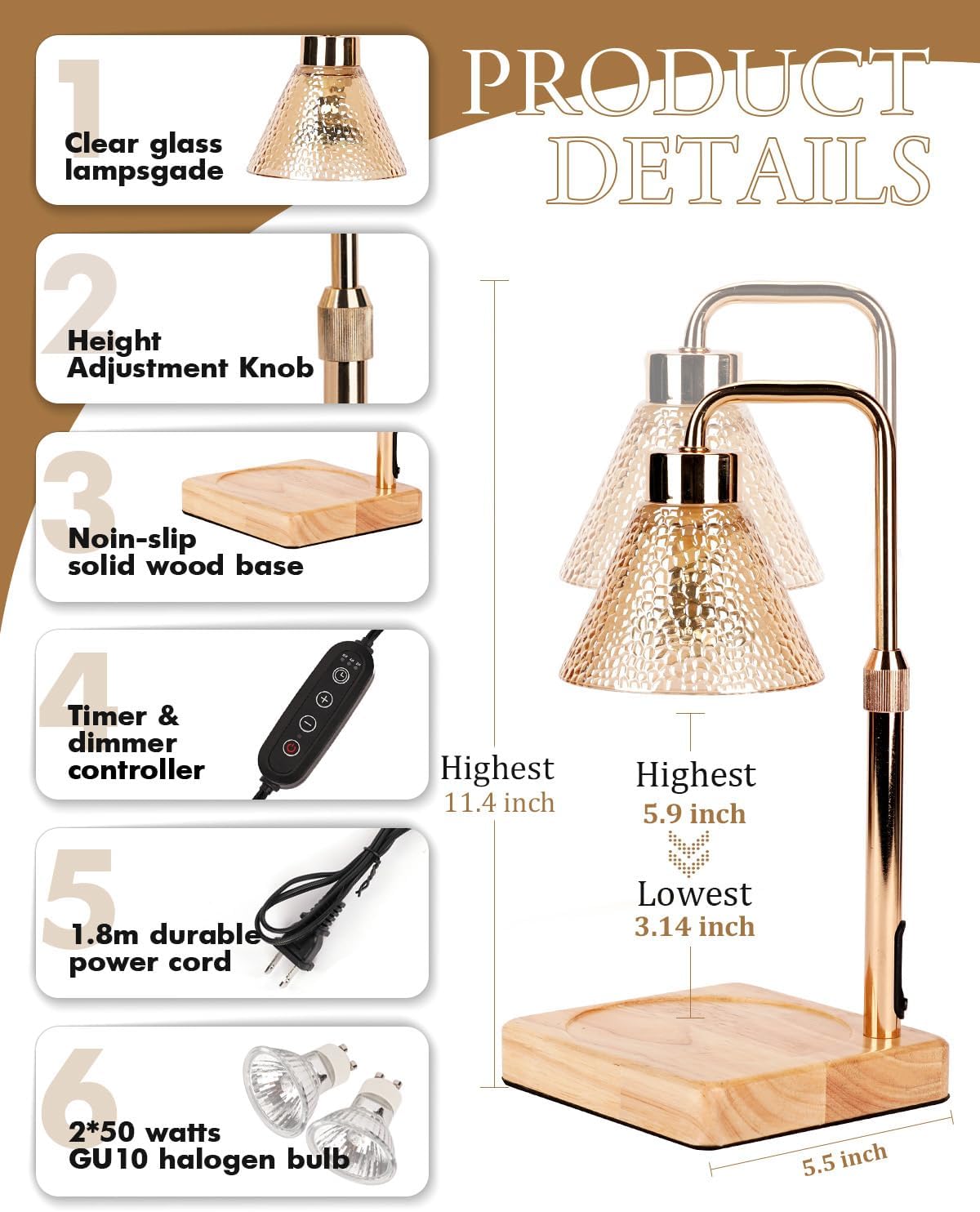 - Height Adjustable & Stable Base: The elegant wooden base(D"4.72in) ensure its stability, making you feel safer when using this candle warmer lamp for jar candles. With adjustable height function(H"2.36-4.72 in), this candle warmer lamp is suitable for all candle sizes.