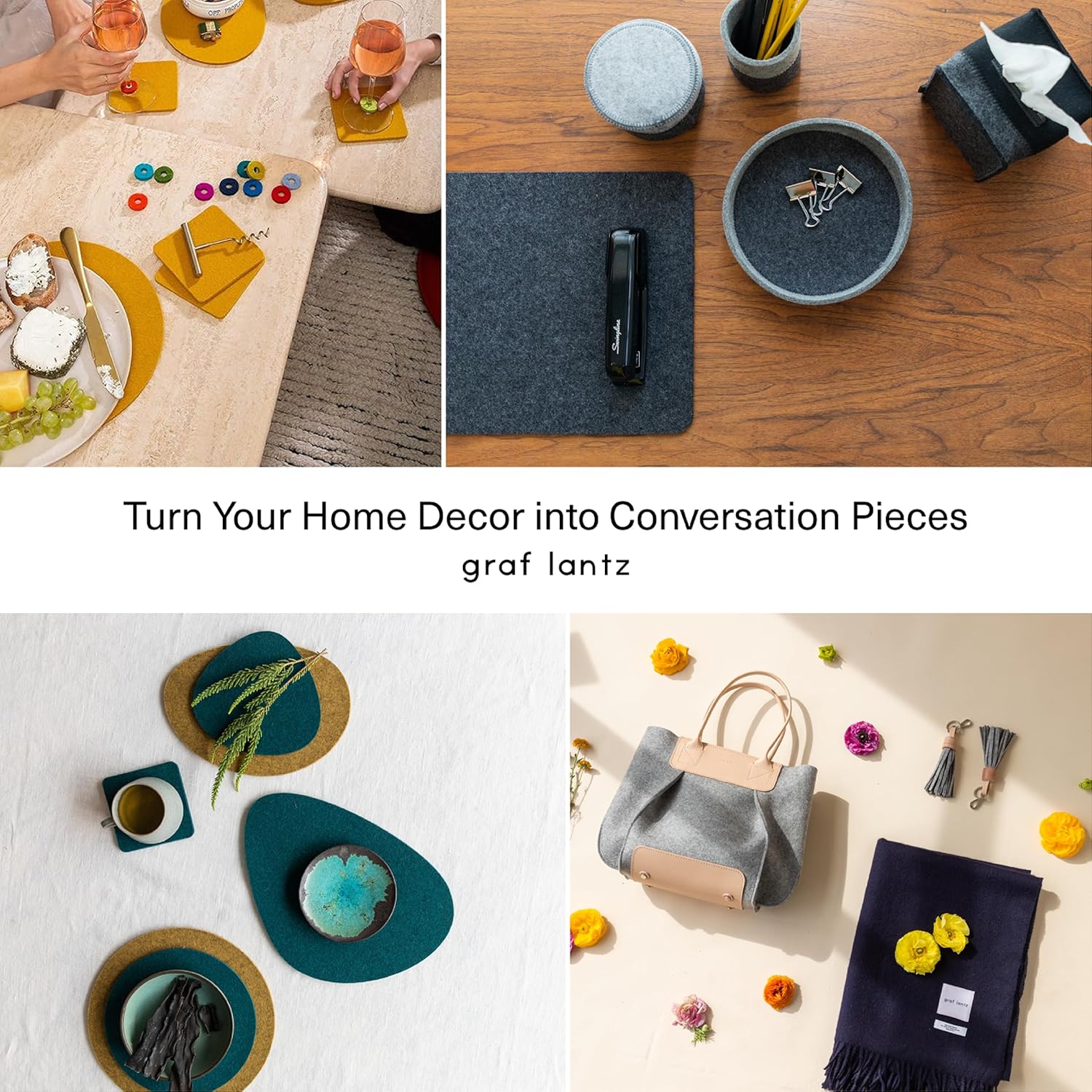 - Bierfilzl Felt Coasters: Our traditional drink coasters are as elegant as they are effective. German-engineered for optimal surface protection. Includes 4 hand-cut, heavy-duty, 5mm coasters in Love.