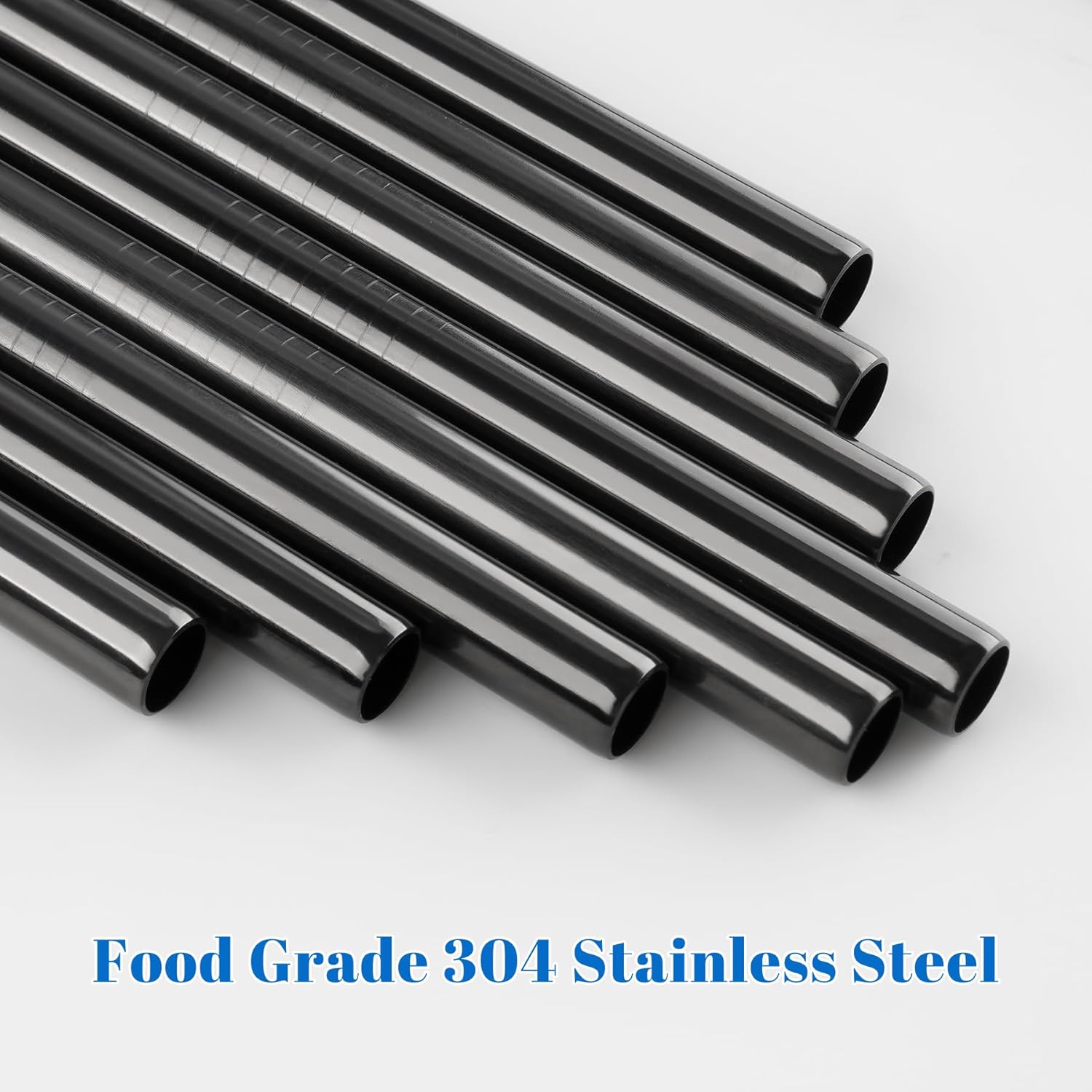 Tomorotec 8-Pack Stainless Steel Straws for Stanley Tumbler 40oz, 12" Metal Straws for Stanley Cup with Brush, Reusable Drinking Straws for Smoothies, Milkshakes, Dishwasher Safe and BPA-Free (Black)