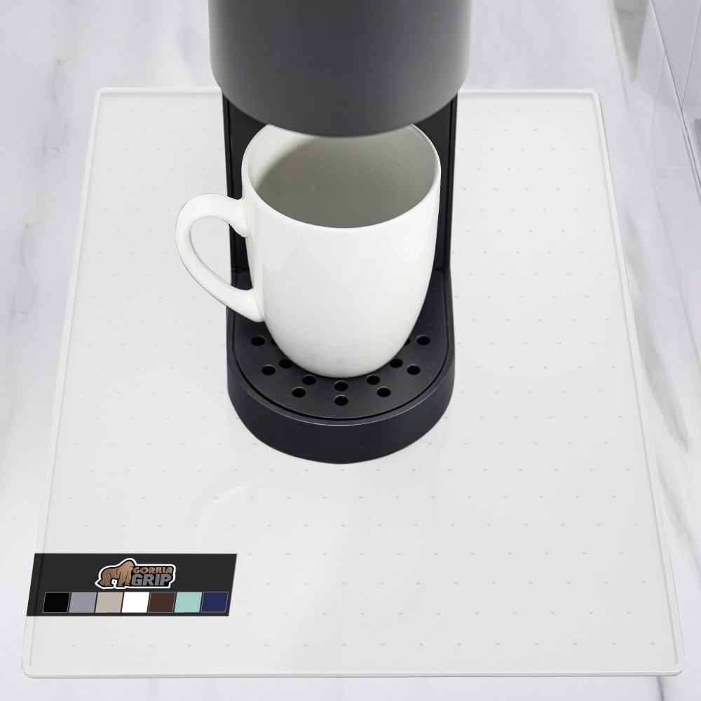 GORILLA GRIP Silicone Coffee Mat, Espresso Drink Bar Station Accessories, Waterproof Heat-Resistant Dish Drying Mats, Stay in Place on Kitchen Counter, Home Kitchen Decor Essentials, 10x14, White