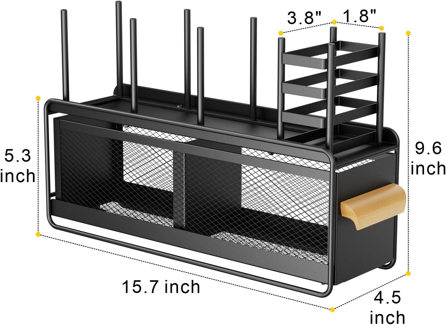 - Sturdy Metal Build: Crafted from durable metal with elegant wooden handle, this coffee station organizer outlasts flimsy plastic organizers; Rustproof coating ensures long-lasting use without chipping or cracking; Sleek black finish complements coffee machines. Note: Divider is fixed not removable
