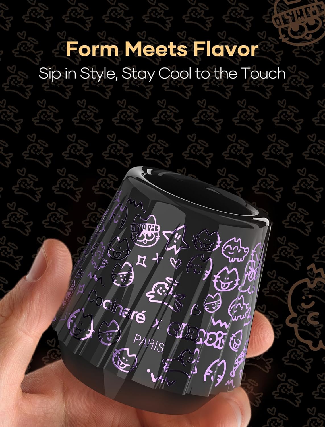 - Expressive Design, Intimate Feel: Hand-drawn feline motifs and a deep black-purple palette turn every cup into a personal gallery moment.