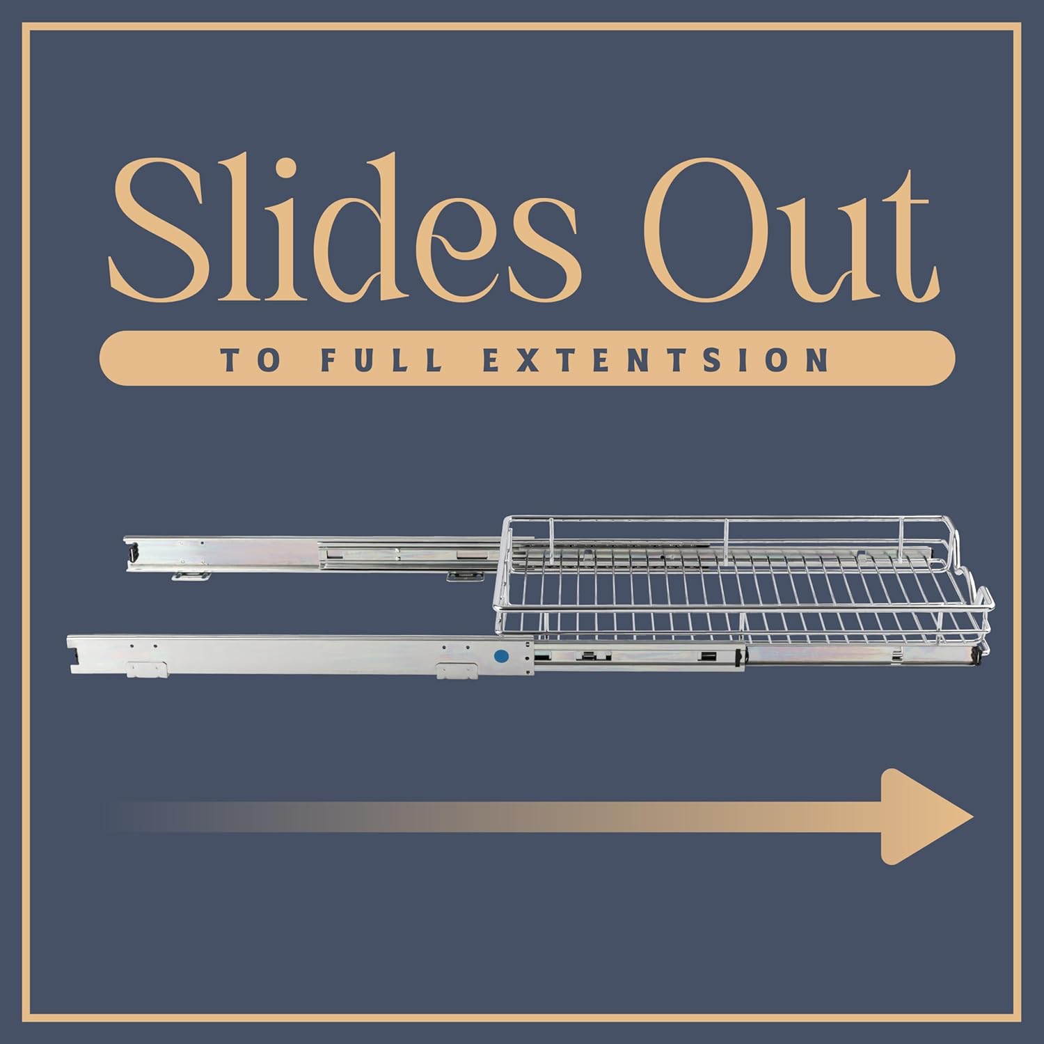 - HIGH QUALITY: Made of durable metal with chrome finish the pull out shelf for kitchen cabinet is simple and easy to install. Designed to fit any style of cabinetry and easy to clean.