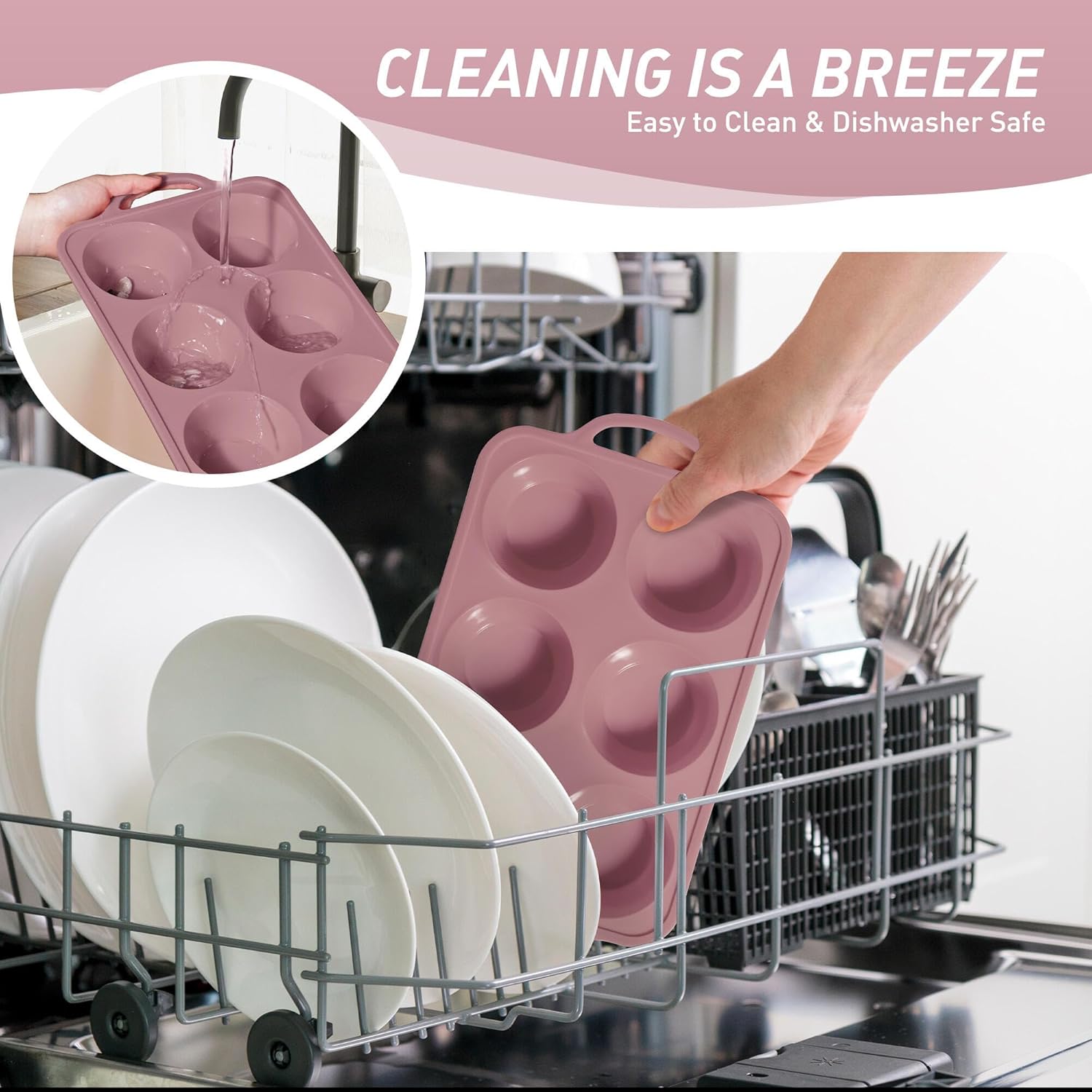 - 【Effortless Release Every Time】Experience 1-second demolding! Simply press the flexible food-grade silicone base to pop out cupcakes intact - no scraping or greasing required. Ideal for sticky recipes like caramel pecan muffins or gooey chocolate lava cakes. Our baking cupcake muffin pan can be safely placed in the dishwasher, and the silicone baking cupcake muffin pan material reduces oil residue by 85% compared to metal baking pans, making it easy to rinse even with simple running water.