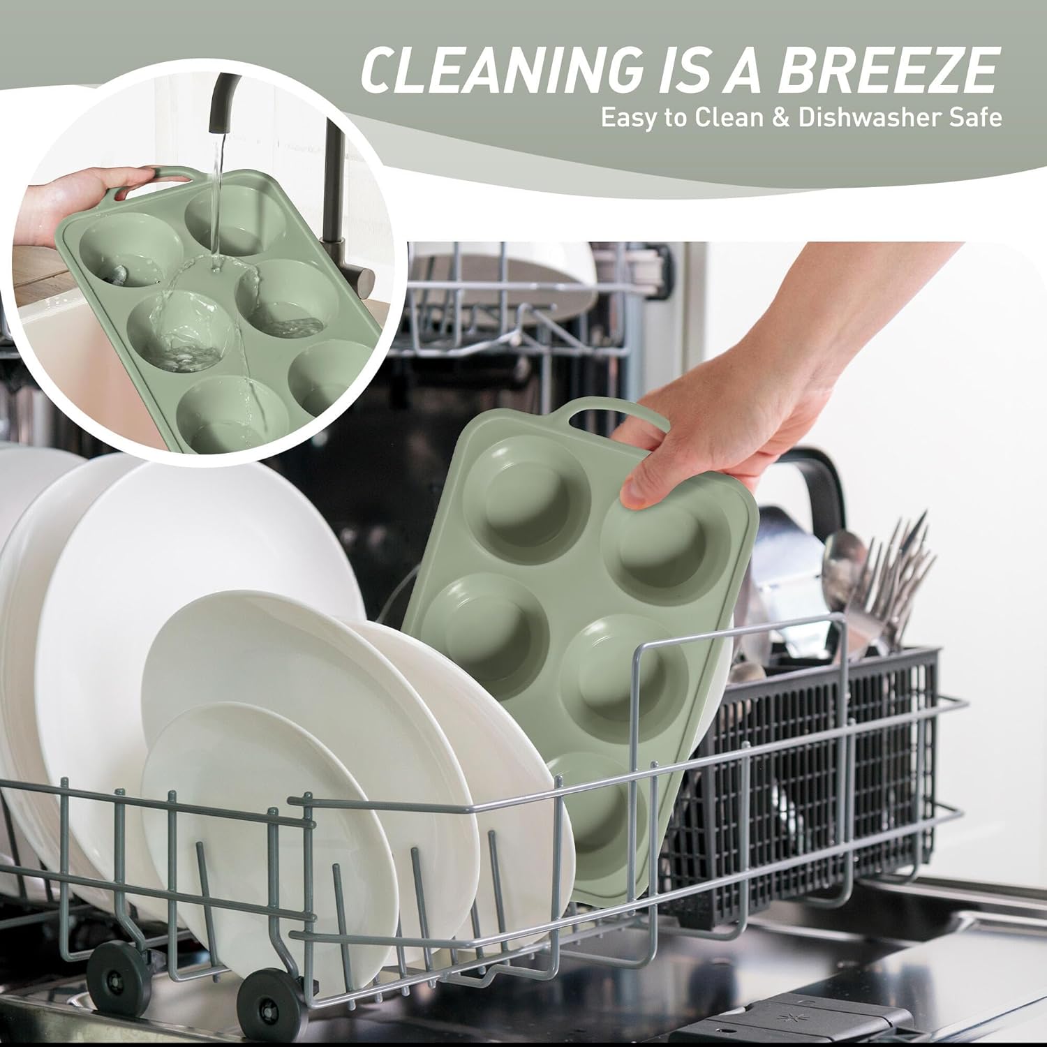 - 【Effortless Release Every Time】Experience 1-second demolding! Simply press the flexible food-grade silicone base to pop out cupcakes intact - no scraping or greasing required. Ideal for sticky recipes like caramel pecan muffins or gooey chocolate lava cakes. Our baking cupcake muffin pan can be safely placed in the dishwasher, and the silicone baking cupcake muffin pan material reduces oil residue by 85% compared to metal baking pans, making it easy to rinse even with simple running water.