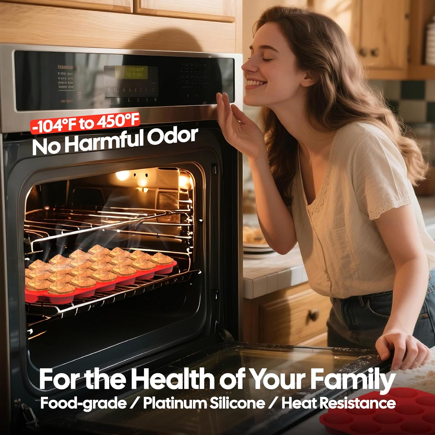 - [Non-Stick & Easy to Clean]: Our Muffin Pan has a non-stick surface for effortless release—simply press the bottom lightly and it pops out. Unlike traditional metal muffin pans, this silicone Muffin Pan won't rust, and cleaning is extremely simple: just rinse with water or place it in the dishwasher, saving you time and effort