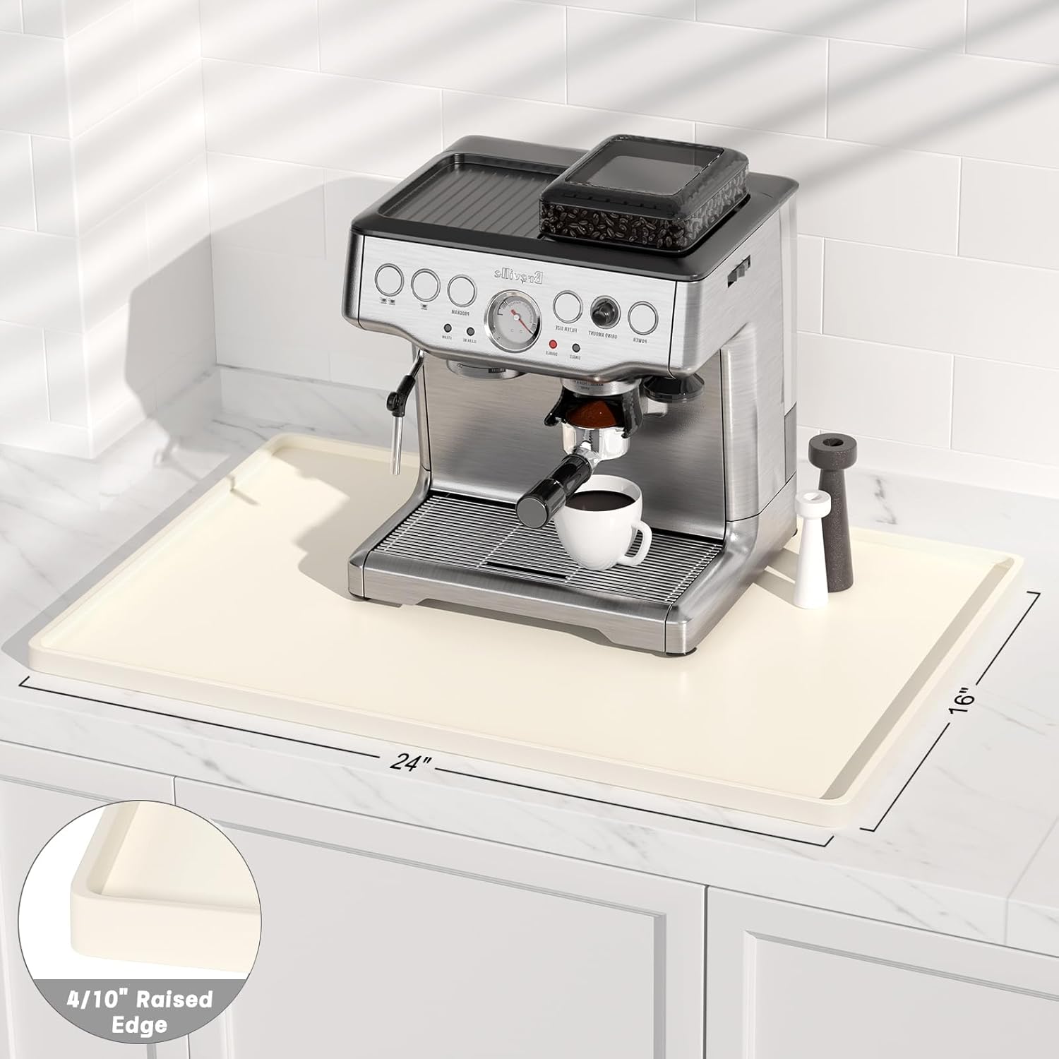 Rnivvi Silicone Coffee Mat, 16" x 24" Waterproof Raised Edge Coffee Bar Mats for Espresso Machine Station Accessories, Heat Resistant Dish Drying Pad for Kitchen Counter, Rubber Bar Decor Pad, Beige