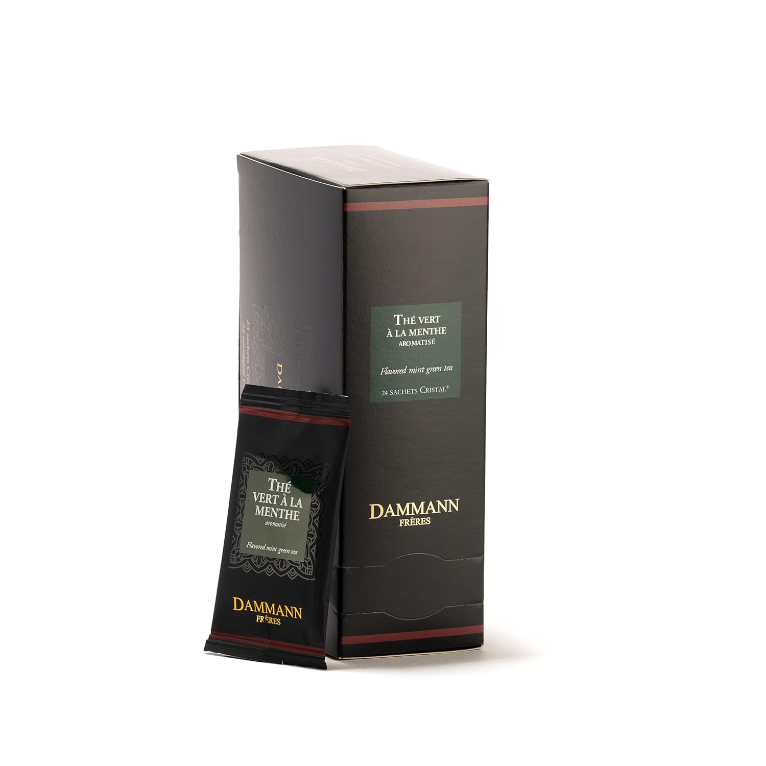 Dammann Freres Satchets, Green Mint Tea Bags, Premium Gourmet French Green Tea, Blend Spearmint, Peppermint Flavors, Individually Wrapped, 24 Count (Single Pack)