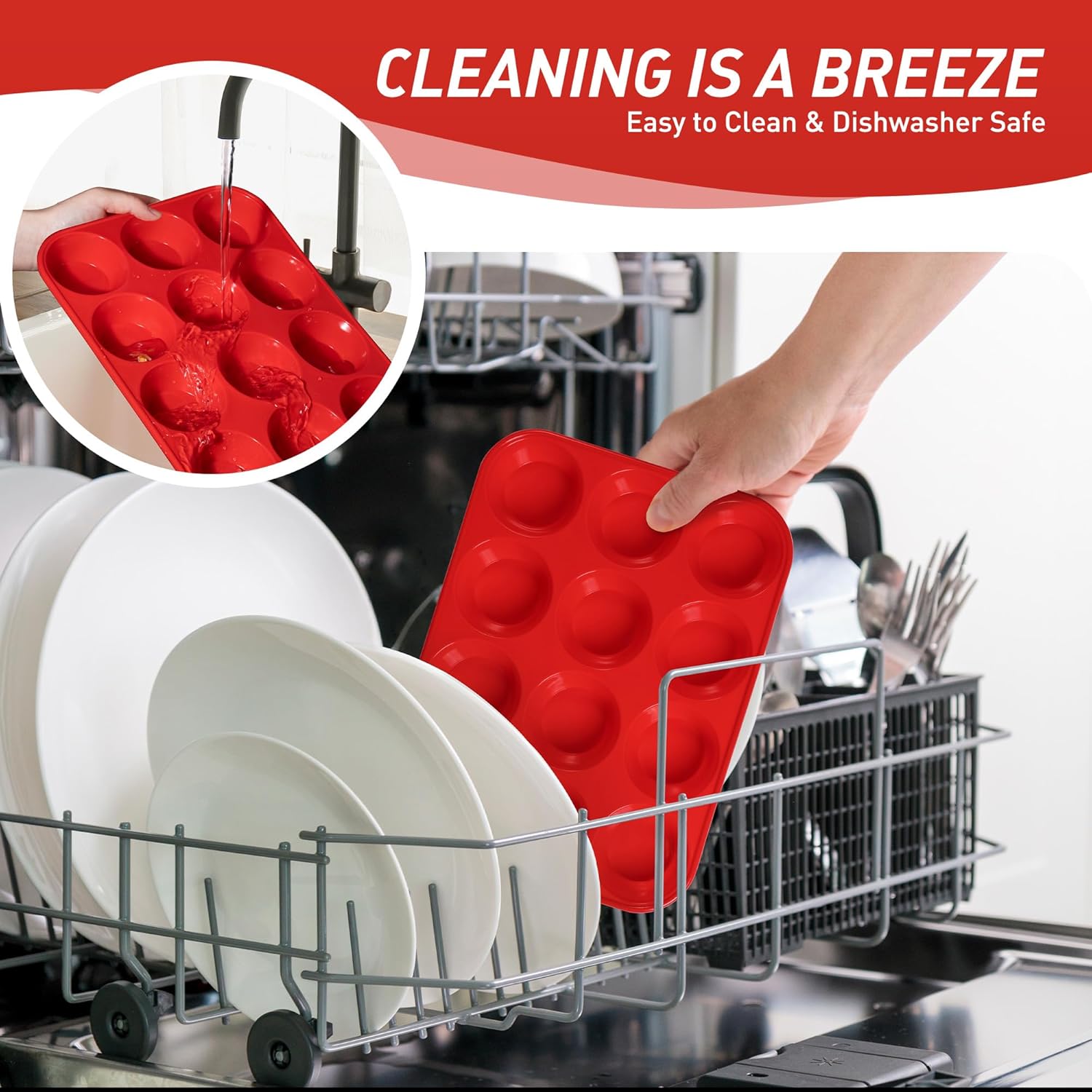 - Effortless Release Every Time: The baking cupcake muffin pans features a smooth, nonstick surface that releases baked goods with just a gentle push from the bottom - no messy greasing or stubborn sticking. After baking, simply place the entire baking cupcake muffin pans in the dishwasher for effortless cleaning. Compared to traditional metal baking cupcake muffin pans, our high-quality silicone material resists oil absorption, reducing residue buildup by 85% for quicker, simpler cleanup.