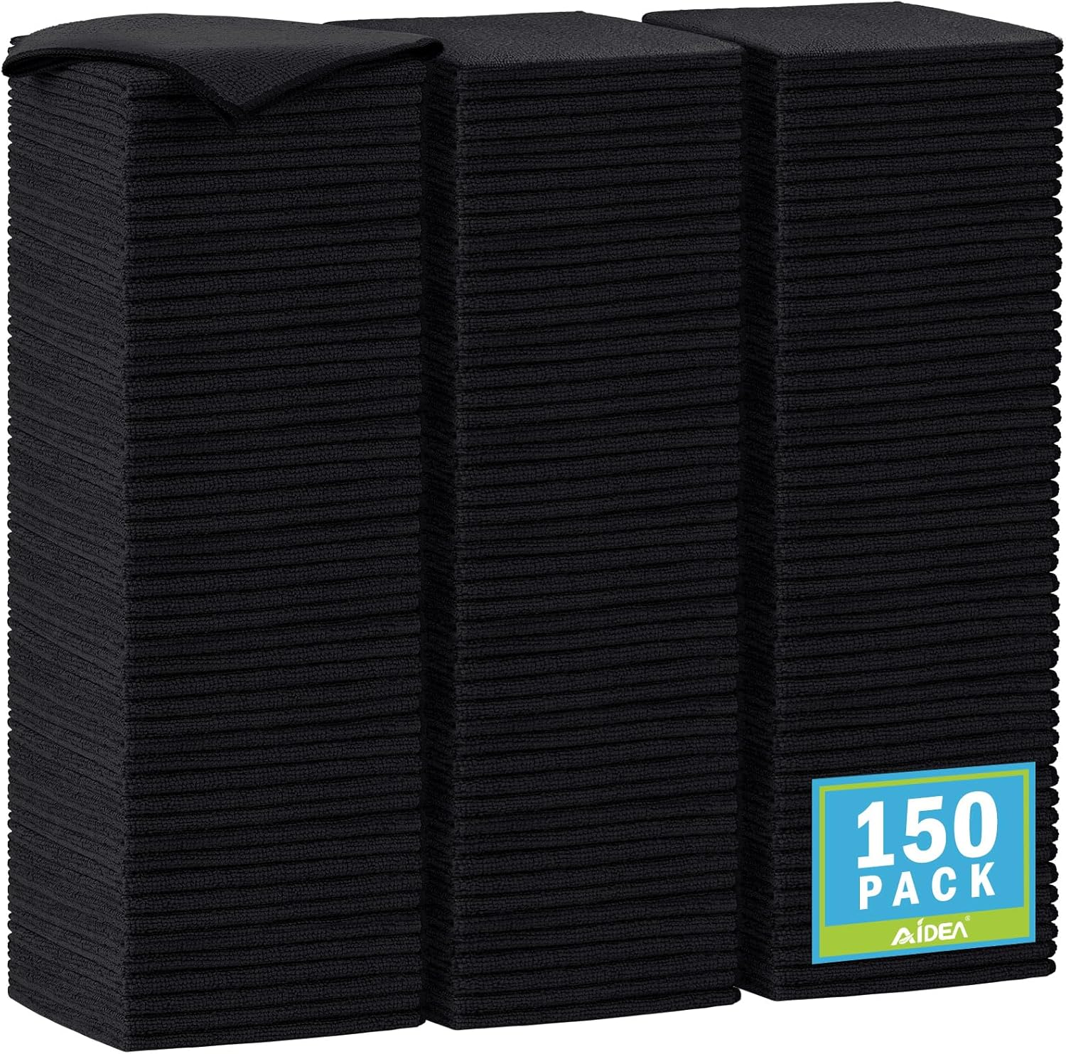 AIDEA Microfiber Cleaning Cloth-150PK, Soft Microfiber Towels for Cars, Absorbent Cleaning Rags, Lint-Free Streak-Free Wash Cloths for House, Kitchen, Window(12in.x12in), Black