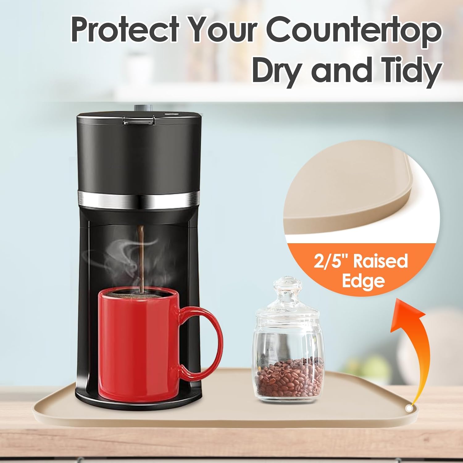 TOHONFOO Silicone Coffee Maker Mat with Lip, 17.4'' x 10.6'' Heavy Duty Coffee Maker Mat for Countertops, Coffee Tray Fit Under Coffee Machine Appliance Automatic Machines Espresso Accessory, Khaki