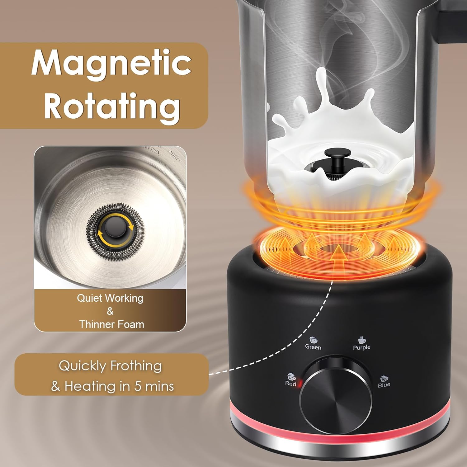 - ๐๐๐ ๐ง๐๐ญ๐ข๐ ๐๐จ๐ญ๐๐ญ๐ข๐ง๐ ๐๐๐๐ก๐ง๐จ๐ฅ๐จ๐ ๐ฒ-The rotating whisk inside the milk frother electric's container to spin and agitate the milk, introducing air and creating foam, that makes stable and consistent frothing what brings consistent agitation, the milk foamer for coffee ensures the foam tinier than other traditional milk frother. Compared to other milk frother, the magnetic rotation technology minimizes the friction between the whisk and the container, improving durability, and making the frother run more quietly.