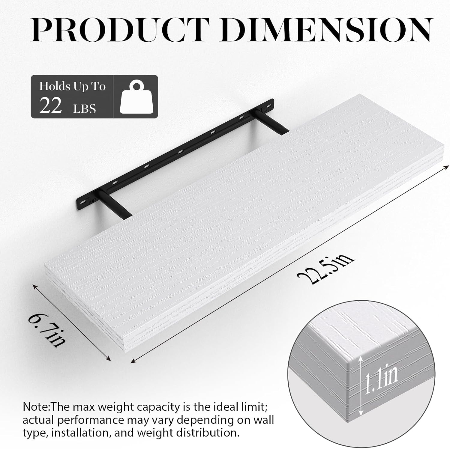 BAYKA Floating Shelves, 22.5" Rustic Wood Wall Mounted Shelves for Bathroom, Bedroom, Living Room, Kitchen & Office, Hanging Display Shelf with 22 lbs Capacity (White)