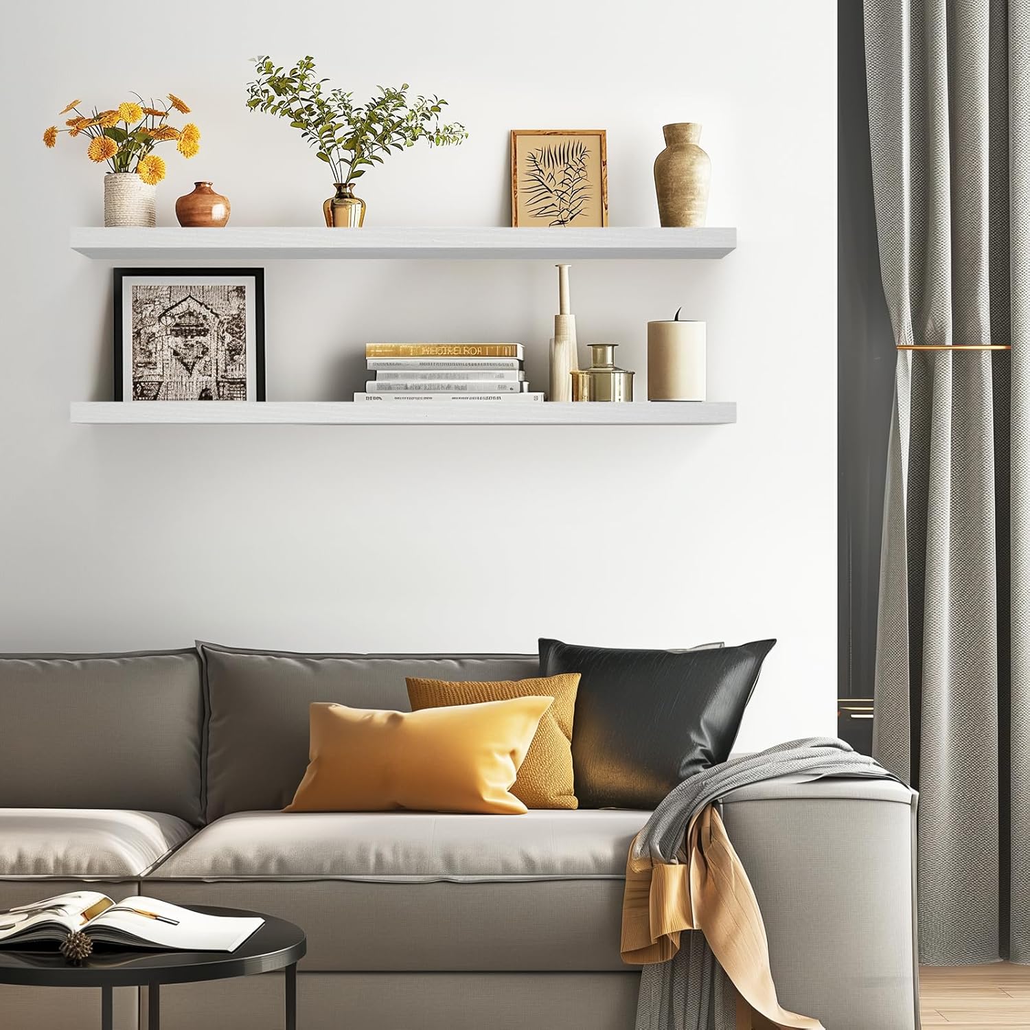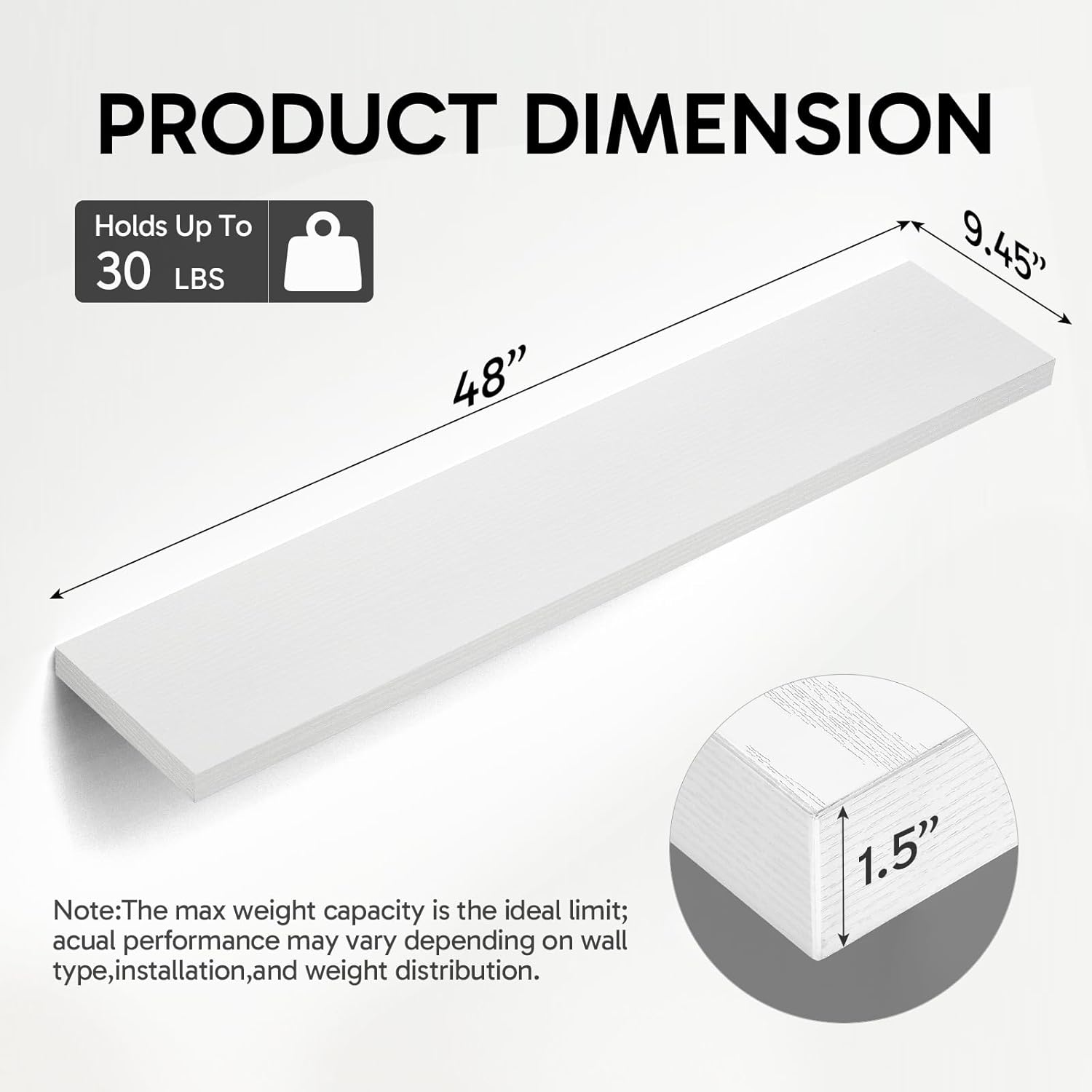 BAYKA Floating Shelves, 48" Wall Mounted Rustic Wood Shelves for Bathroom, Bedroom, Living Room, Kitchen, Office, Hanging Shelf for Books/Storage/Decor(White,Set of 2)