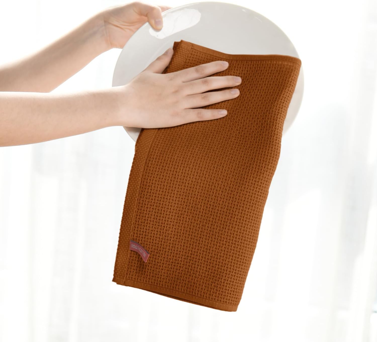 Artoid Mode 100% Cotton Caramel Waffle Weave Kitchen Dish Cloths, 13x28 Inch Ultra Soft Absorbent Quick Drying Kitchen Dish Towels Set of 4