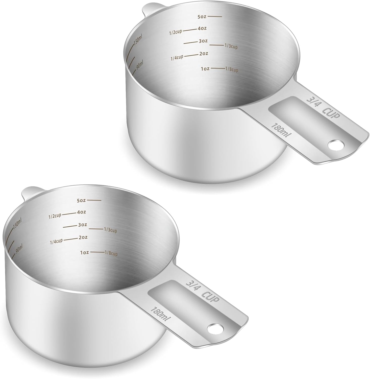 2PCS 3/4Cup (180ml, 6oz) Single Measuring Cup, Etched Inner Scale Stainless Steel Measure Scoop, Metric and US Measurement, Dishwasher Safe