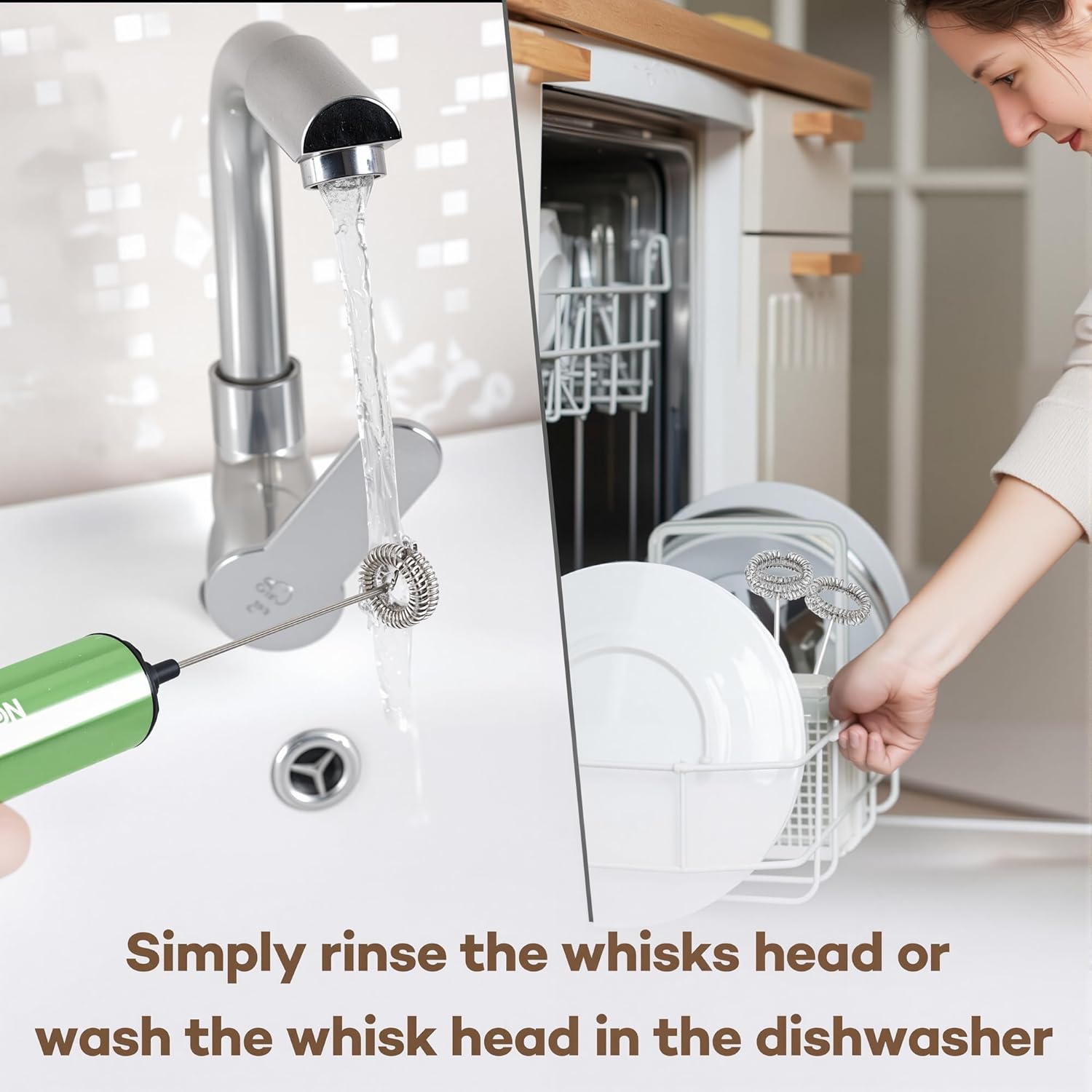 - Versatile with Multiple Attachments- Includes a dual-spring whisk for frothing, a single-spring whisk for light mixing, an egg beater for whisking eggs, and a drink mixer for blending shakes and cocktails. Perfect for daily use at home or on the go.