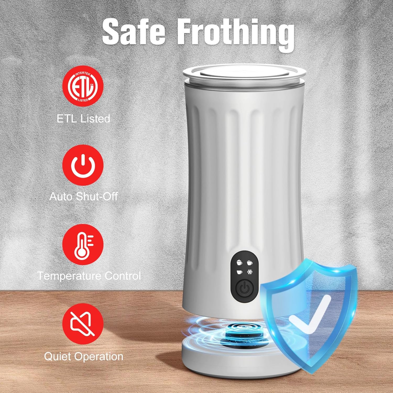 Electric Milk Frother, 4-in-1 Milk Steamer and Frother, 8.1oz/240ml Automatic Warm and Cold Foam Maker, Auto Shut-Off Frother for Coffee, Latte, Cappuccino, Macchiato(White)