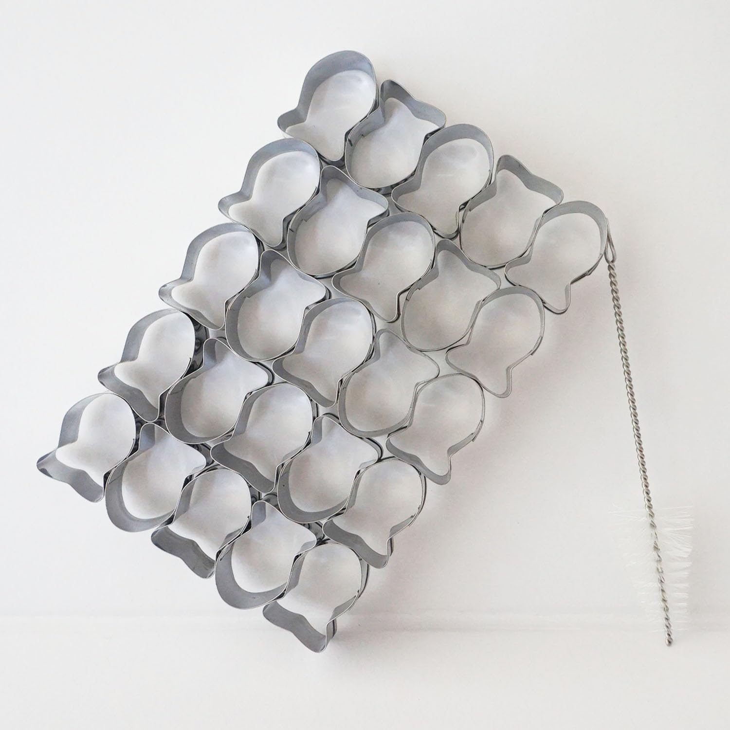 - Small fish cookie cutter, 25 holes: it is a 25 cavities cracker mold, you can make plenty of cute 3D goldfish cookies in a short time, much better alternative than trying to stamp them out one by one