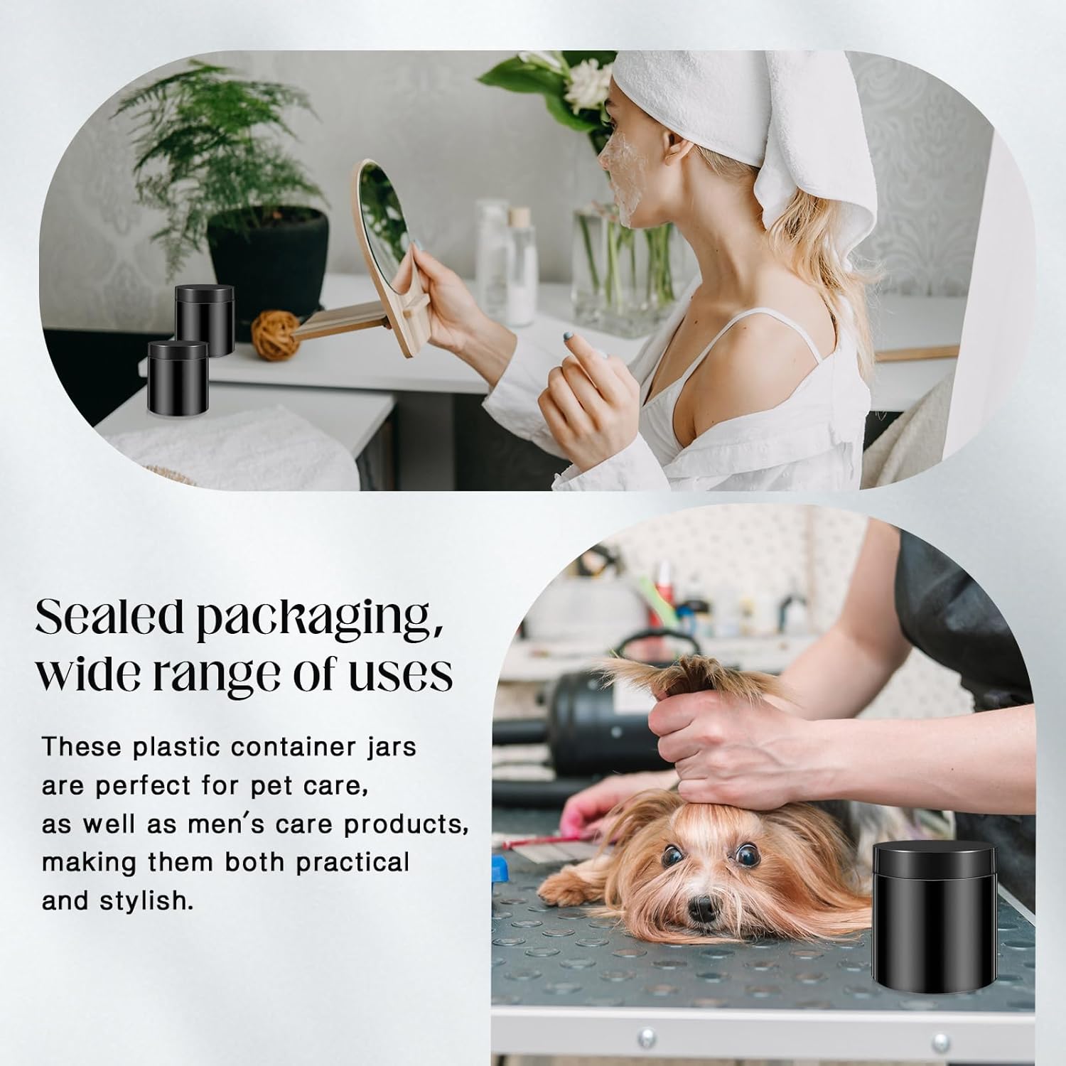 Patelai 4 Pieces Round Wide-mouth Leak Proof Plastic Container Jars with Lids for Travel Storage Makeup Beauty Products Face Creams Oils Salves Ointments DIY Making(16 Ounce,Pure Black)