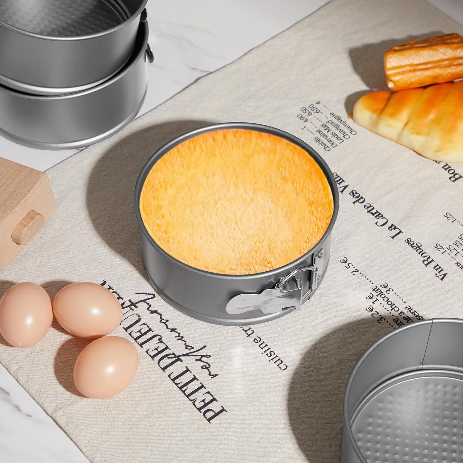 - Stainless Steel Spring Buckles Design: the stainless steel spring buckles of this cake pan round have been upgraded, which are more sturdy and easier to switch, but will not fall off or break, making it easy to pull the cake out nicely