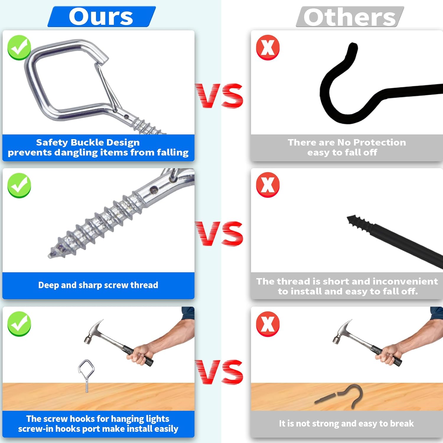 - 🔧【Easy Screw-In Installation】 Simply twist into wood, ceilings, beams, fences, or walls for instant hanging support. 2.36-inch length provides a firm hold.
