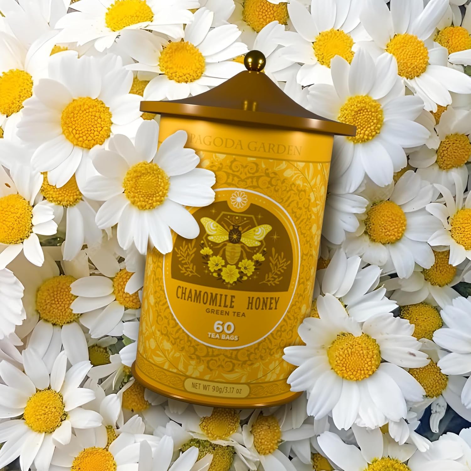 Life Plus Style Gourmet Pagoda Garden Chamomile Honey Green Tea Organic Herbal Green Caffeinated Hot or Iced Natural Sweet Honey Sleep Relax Antioxidants Wellness Support 60 Tea Bags