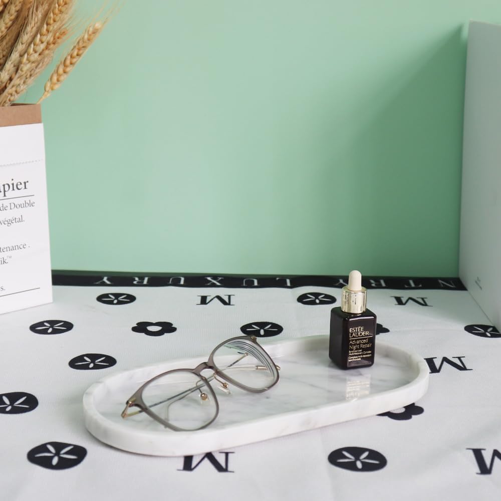 Natural Marble Tray, Oval Vanity Decorative Tray for Bathroom Counter, Countertop Stone Organizer, Catchall Tray for Kitchen, Perfume, Candles, Jewelry Dish Decorative Tray