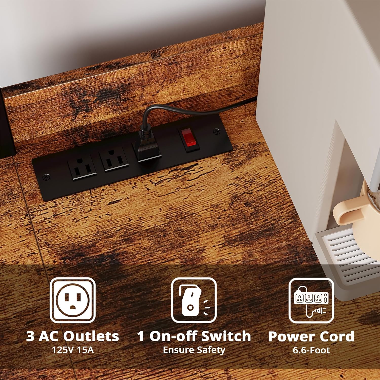 - Power Outlets: Featuring 3 AC outlets, the coffee bar cabinet is perfect for powering multiple appliances simultaneously. The built-in power switch allows you to turn off all appliances at once, reducing energy waste and enhancing safety.