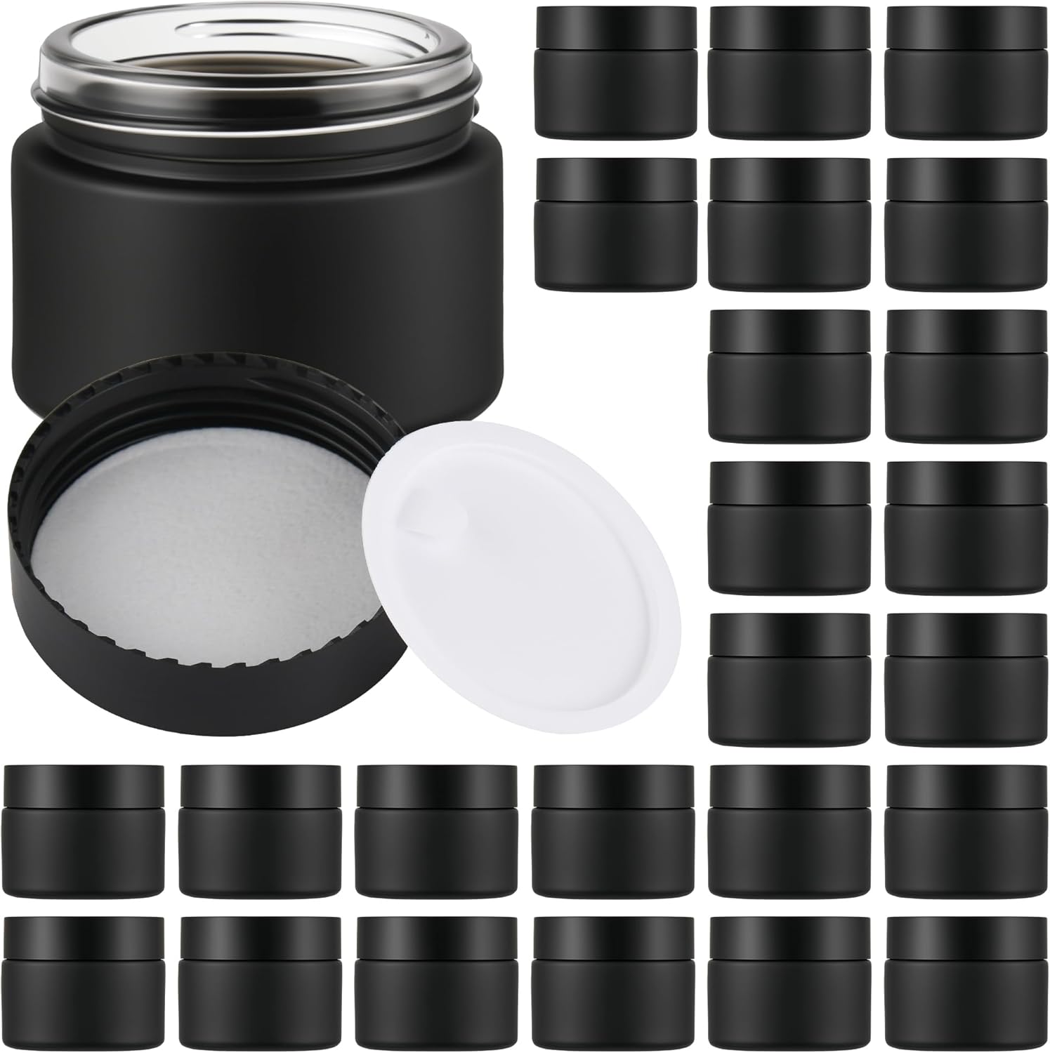 Glass Jars with Lids,Eco-Friendly Cosmetic Containers with Airtight Black Lids & Liners, Multi-Color Options for Cream, Lotion, Body Butter, DIY Skincare Travel Jars (Frosted Black, 2oz)