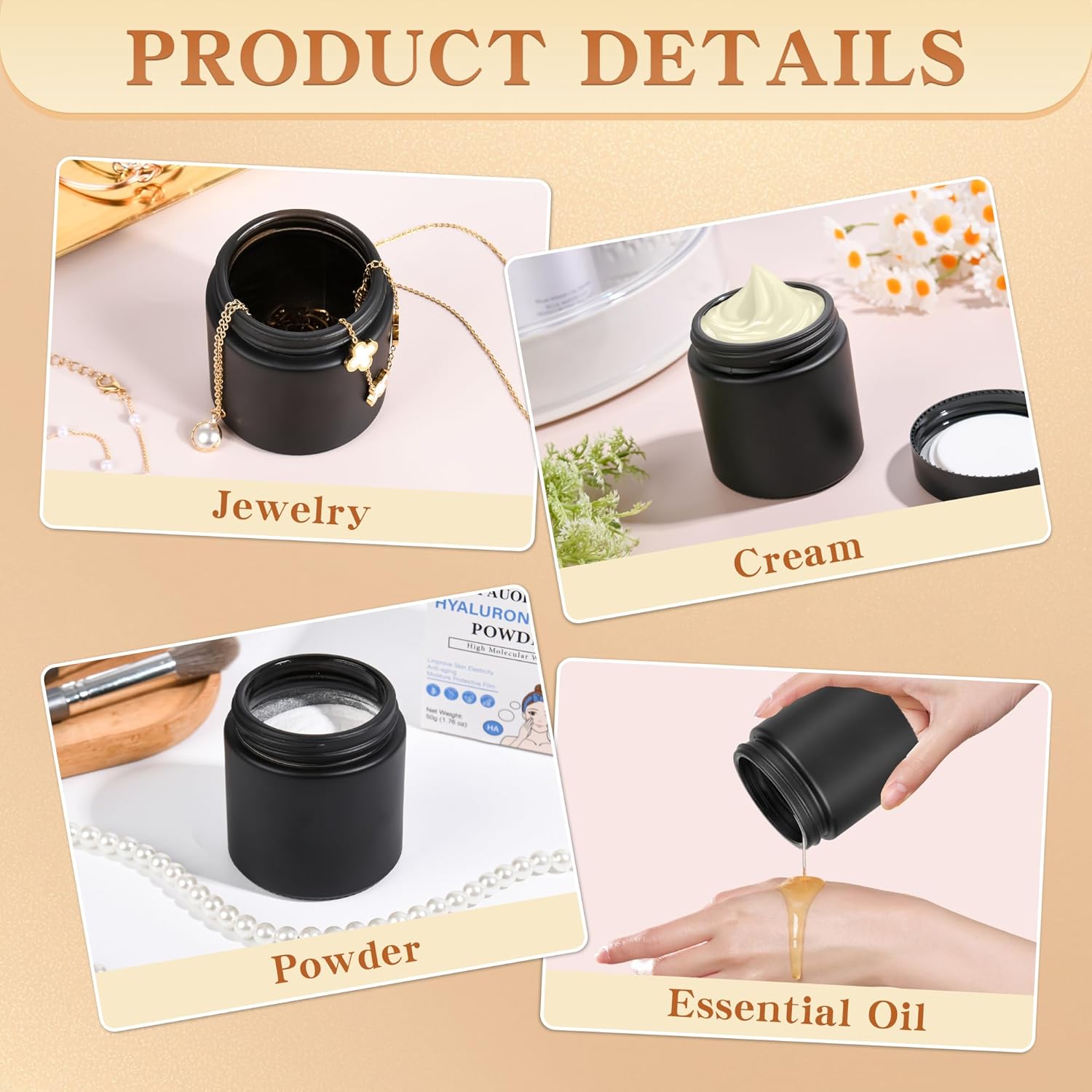 - 【Pro-Grade Organization】 Elevate your brand with luxury jars! Amber/black jars protect premium formulations, while clear jars showcase product purity. Compatible with label printers for professional branding – loved by estheticians and indie beauty brands!