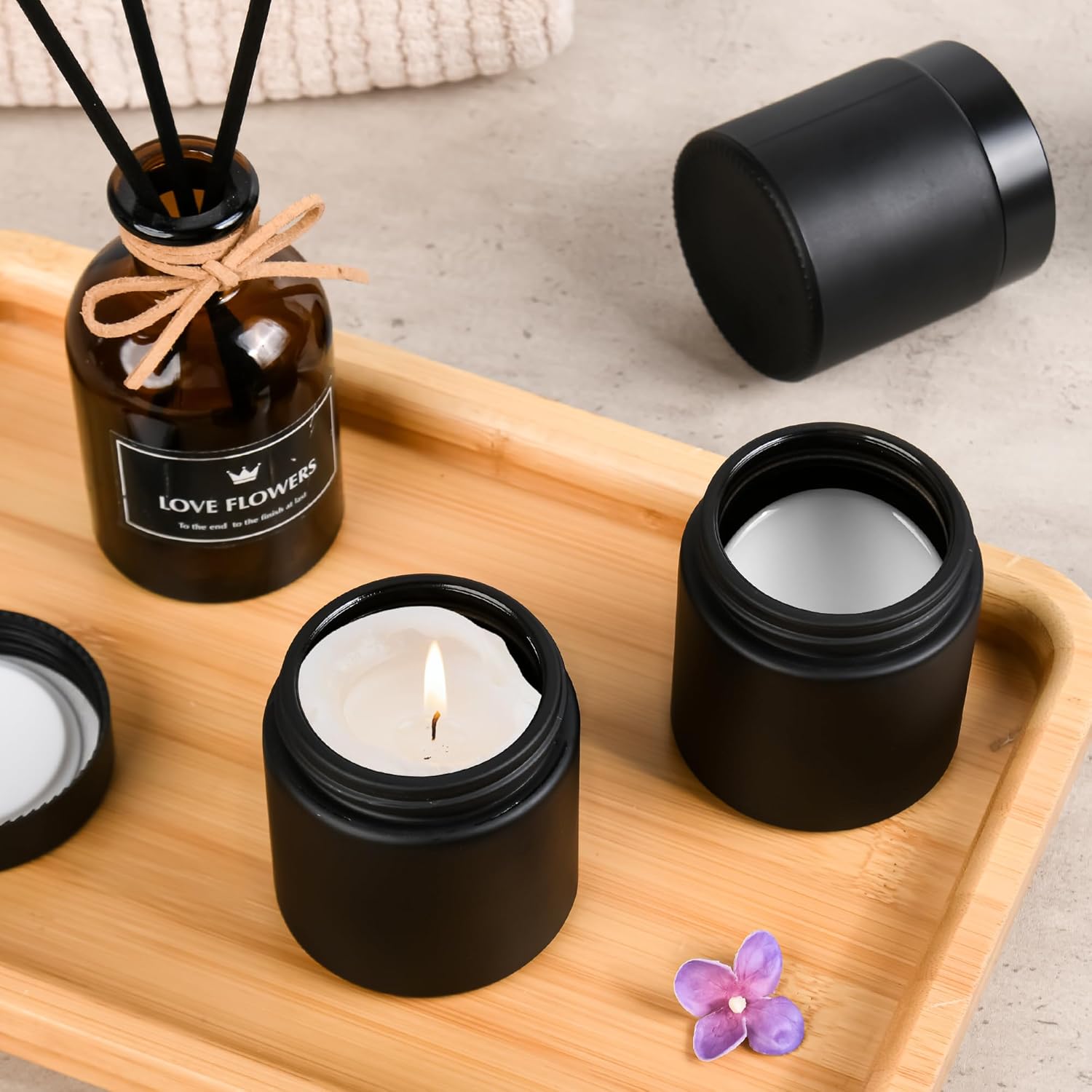 Glass Jars with Lids,Eco-Friendly Cosmetic Containers with Airtight Black Lids & Liners, Multi-Color Options for Cream, Lotion, Body Butter, DIY Skincare Travel Jars (Frosted Black, 4oz)