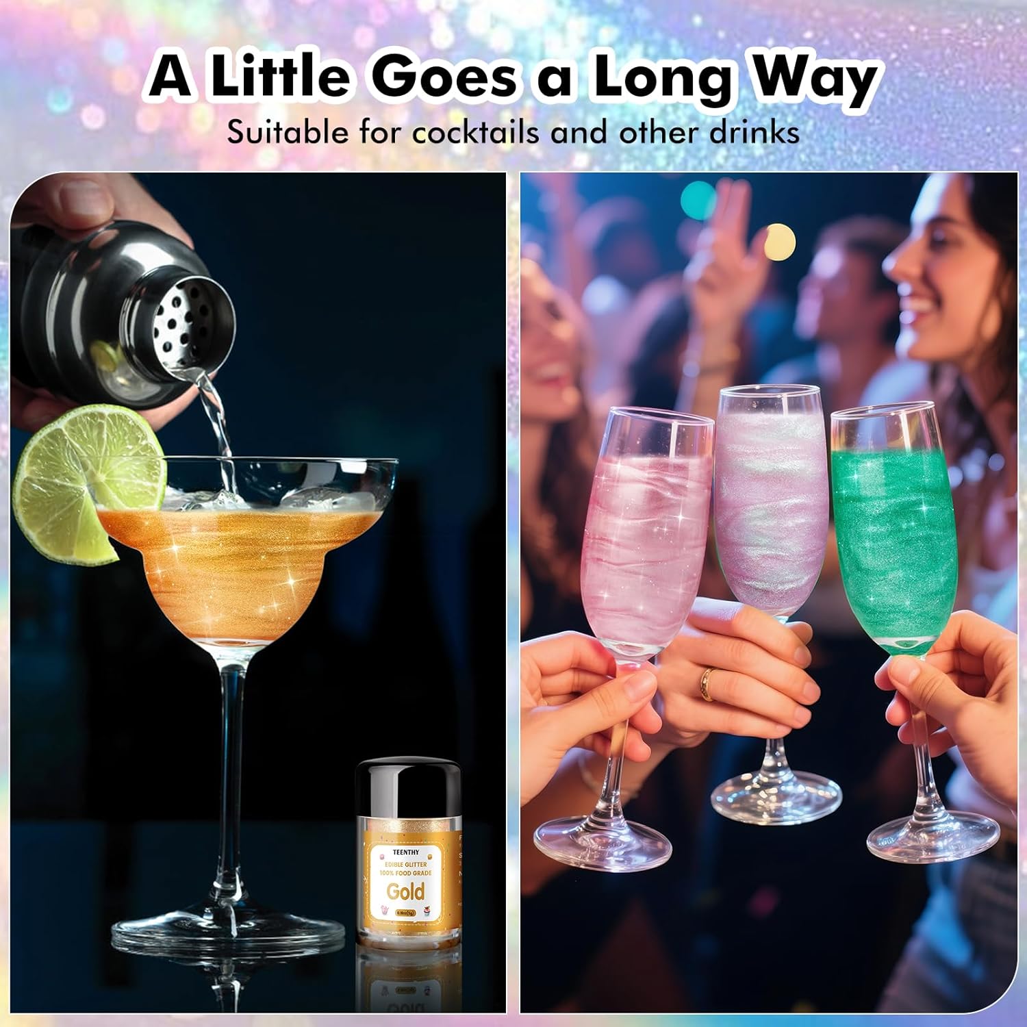 - Food-grade and tasteless: Our glitter for cocktails is 100% edible, vegan-friendly and free of any burden. It contains dairy-free, GMO-free, sugar free, gluten free, nut free. Furthermore, the edible glitter is tasteless, which does not affect the original taste of food